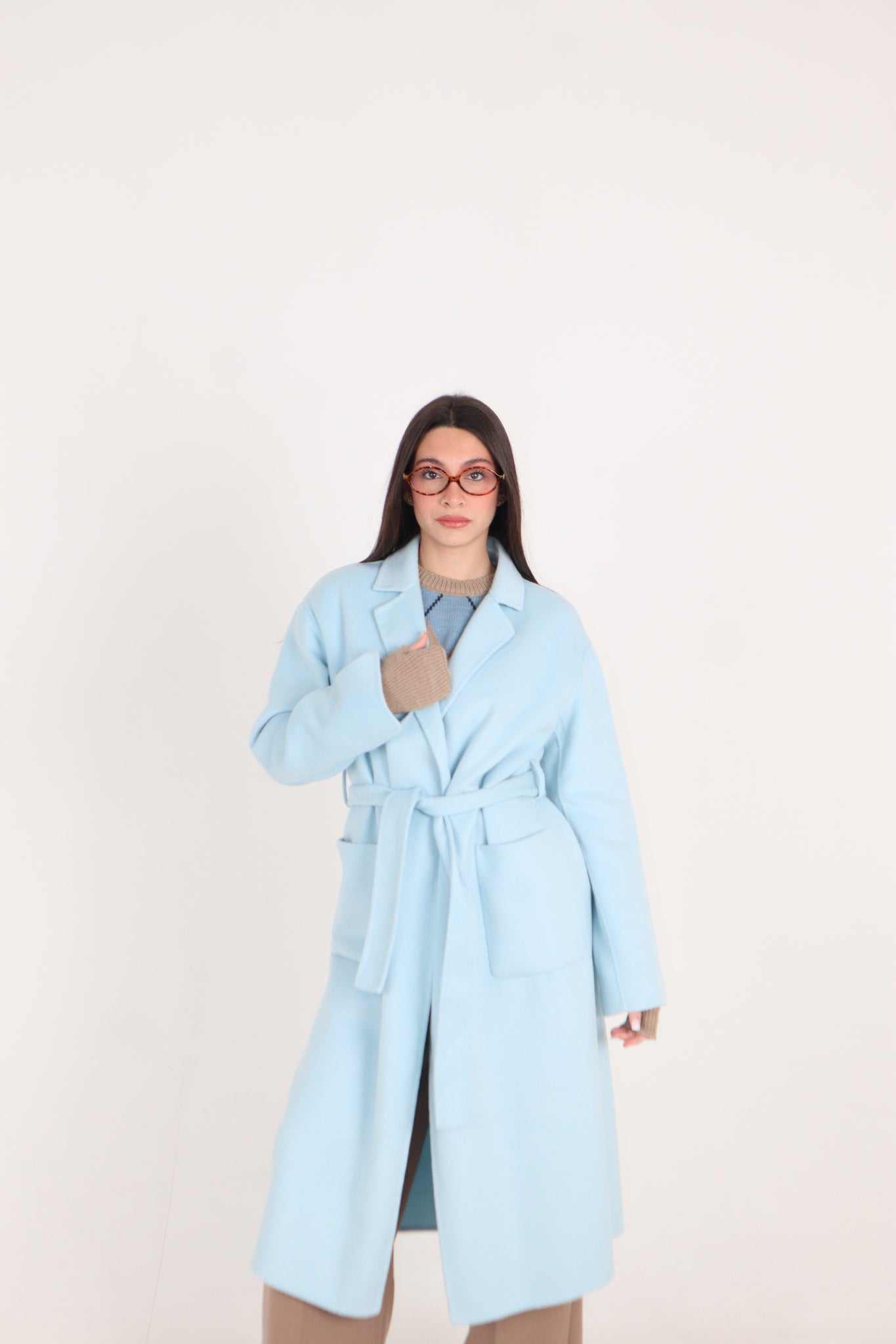 cappotto con cintura due tasche modello vestaglia