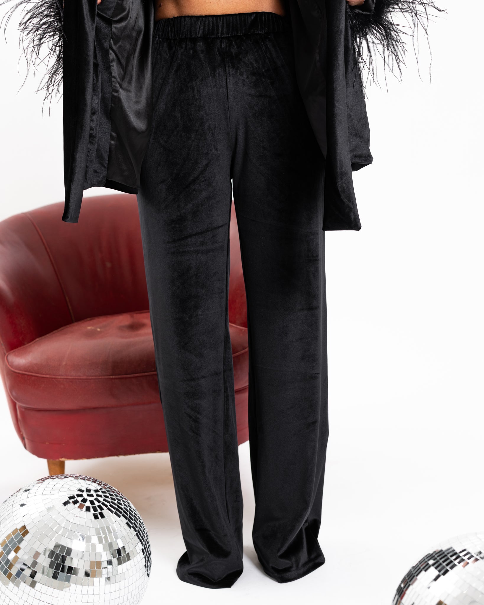 PANTALONE DRITTO IN VELLUTO CON ELASTICO IN VITA