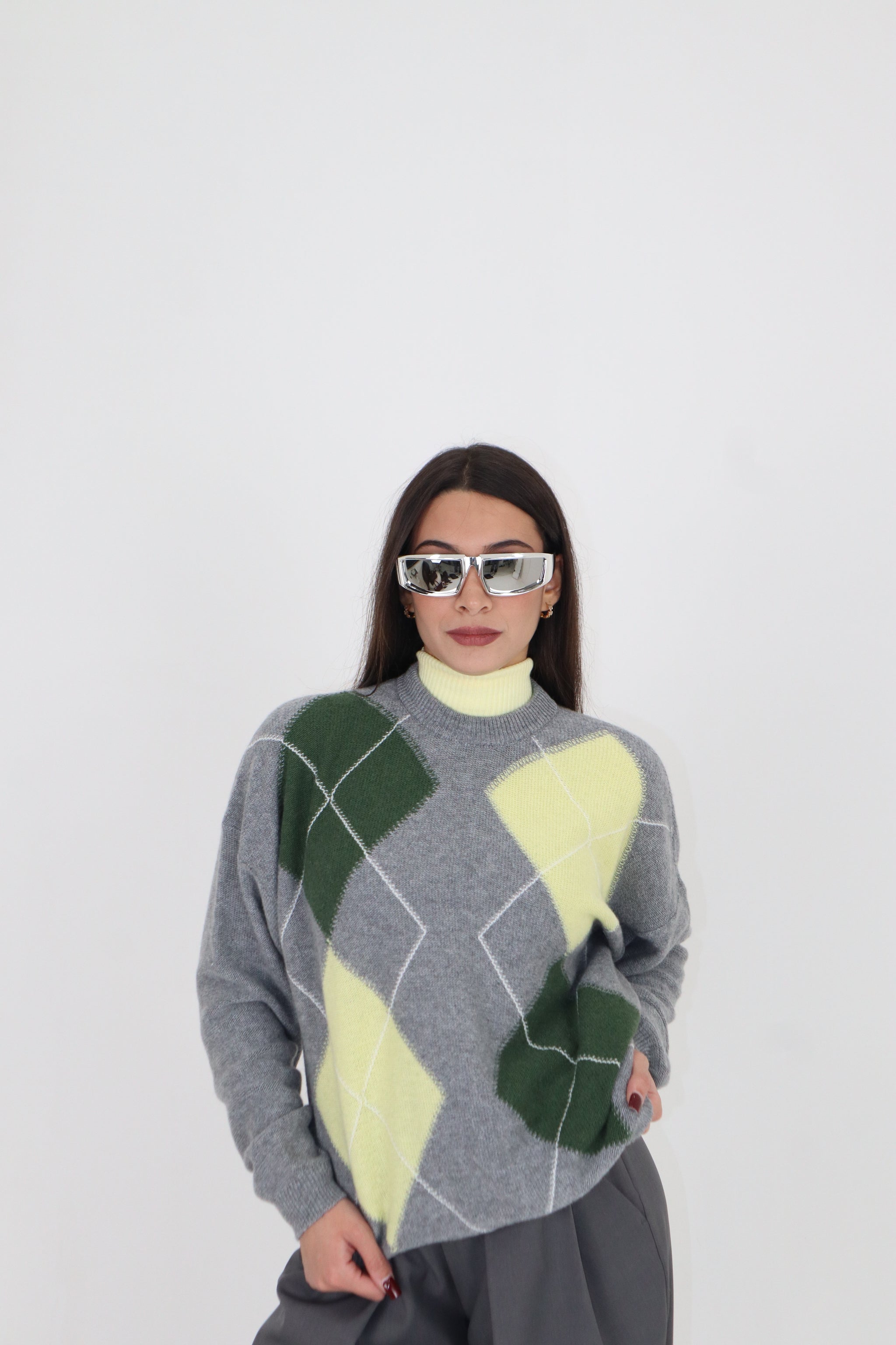 77195F MAGLIONE ROMBI GIALLO GRIGIO E VERDE