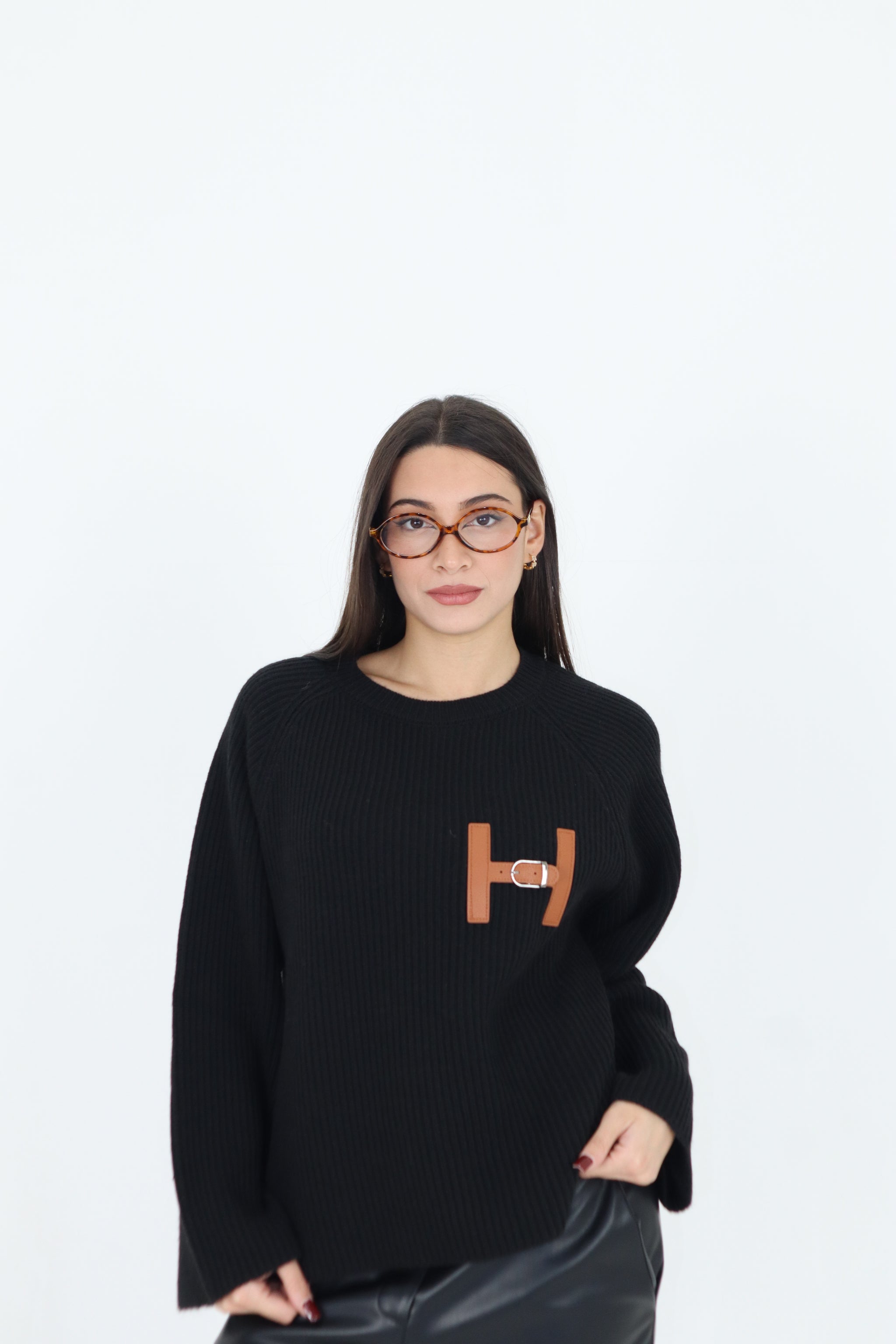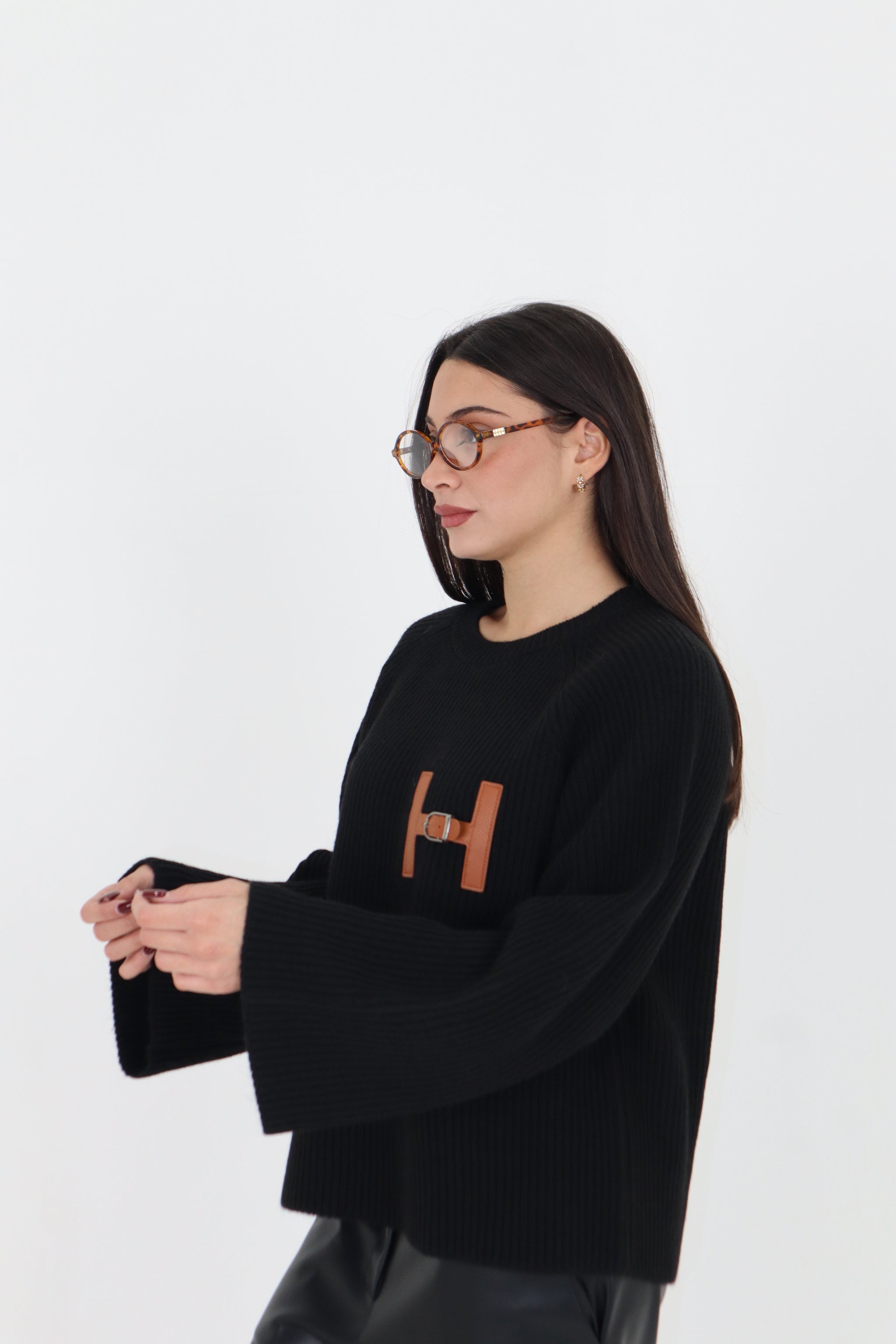 PULL HERME IN LANA FREDDA CON INSERTO IN SIMIL PELLE