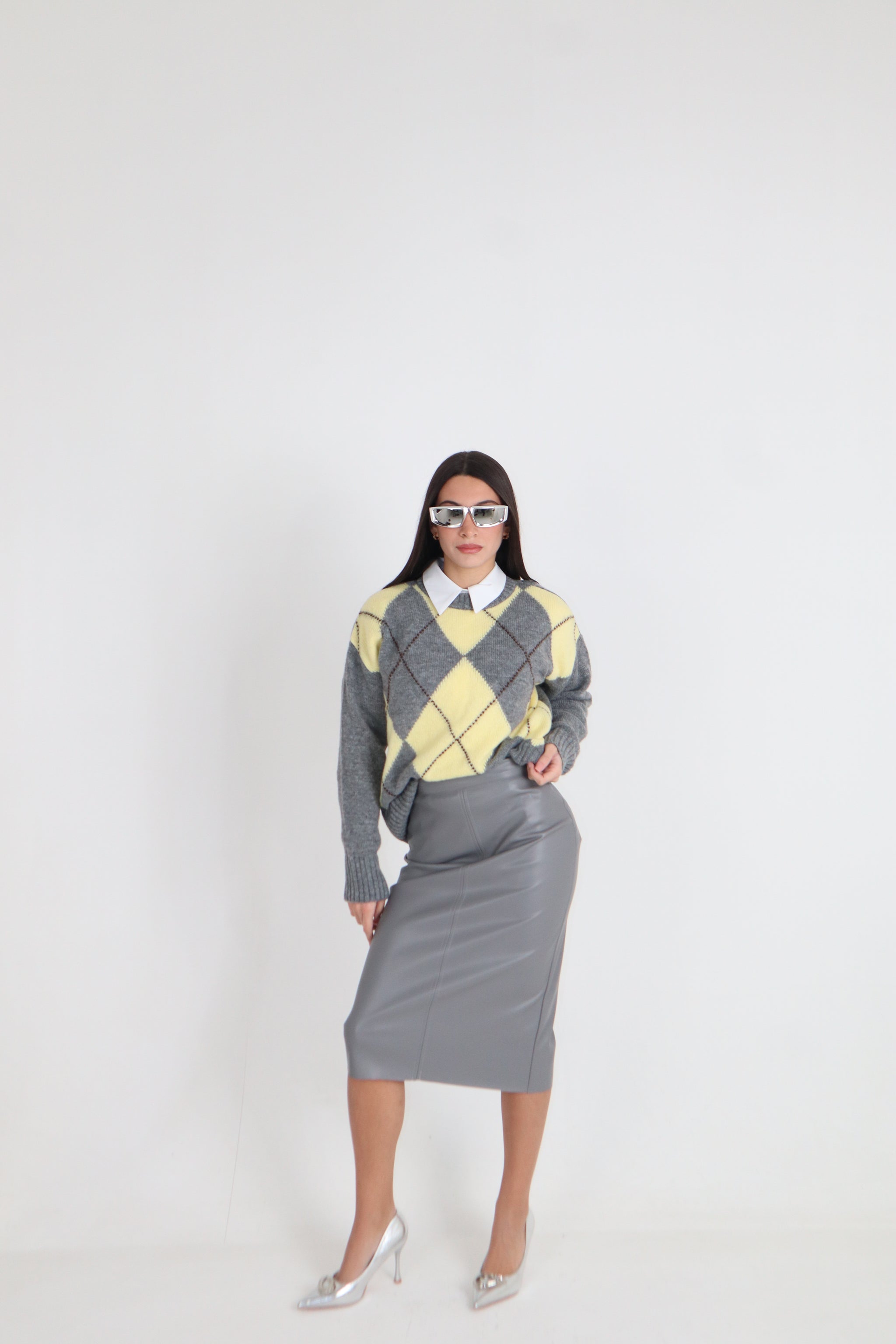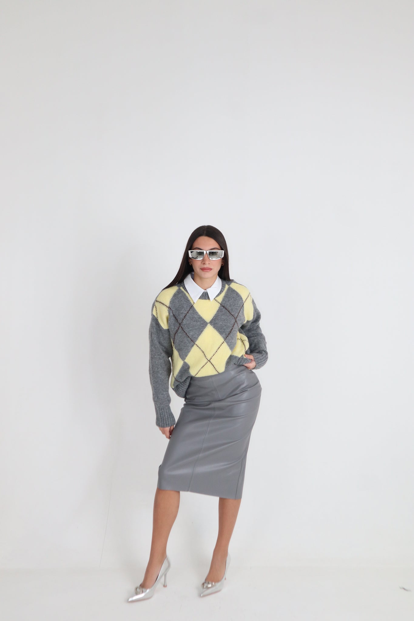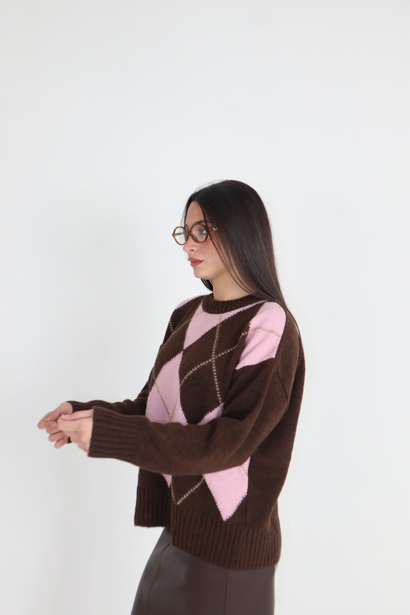 Pull rombi con intarsi in diversi colori , girocollo , polsini e orlo a costa .