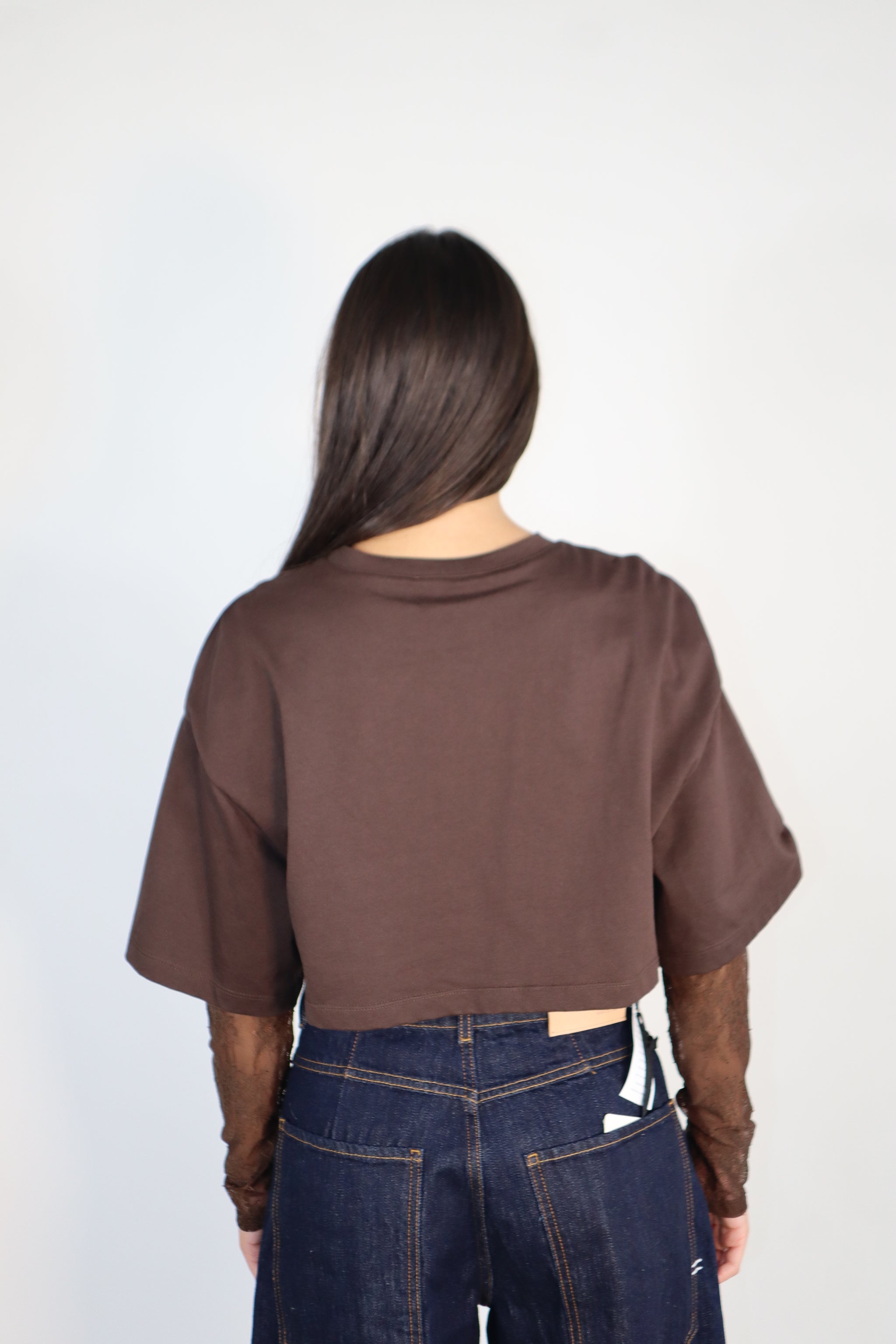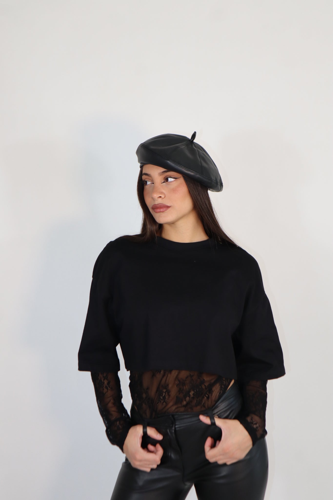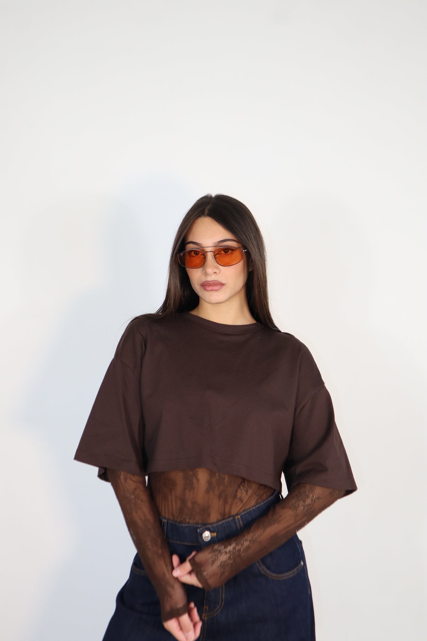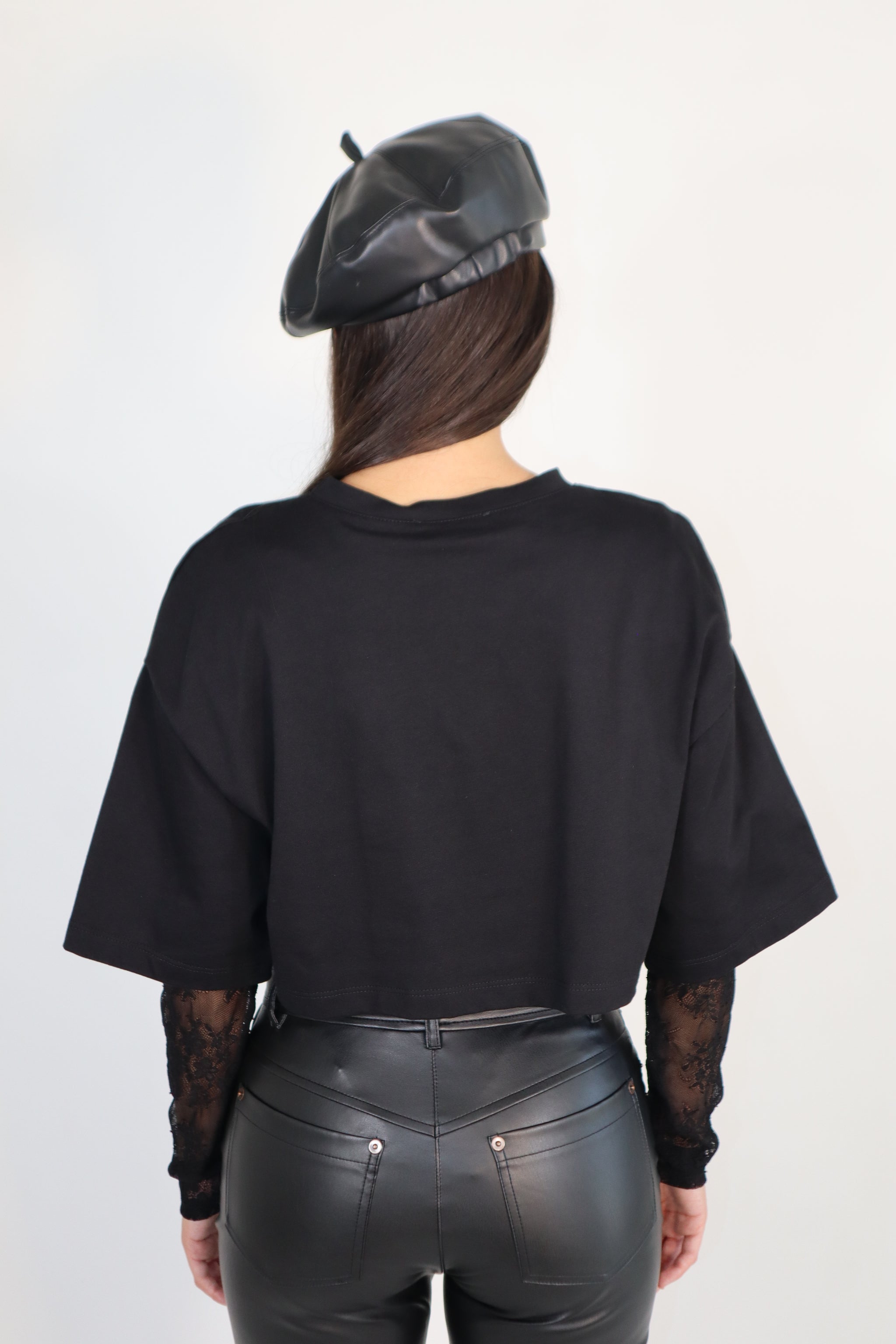 UF0157 BODY IN PIZZO CON T SHIRT CROP E MANICHE IN PIZZO