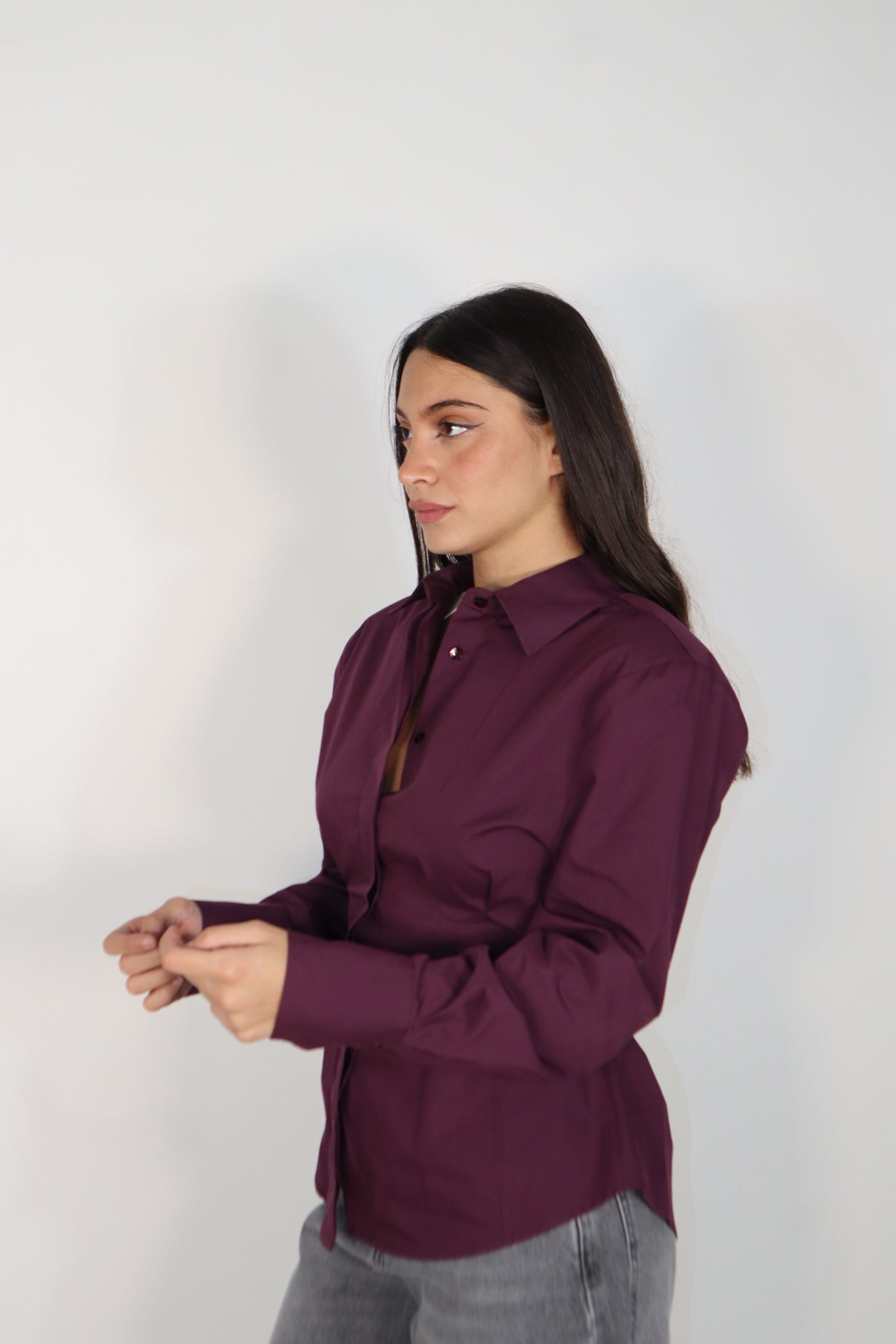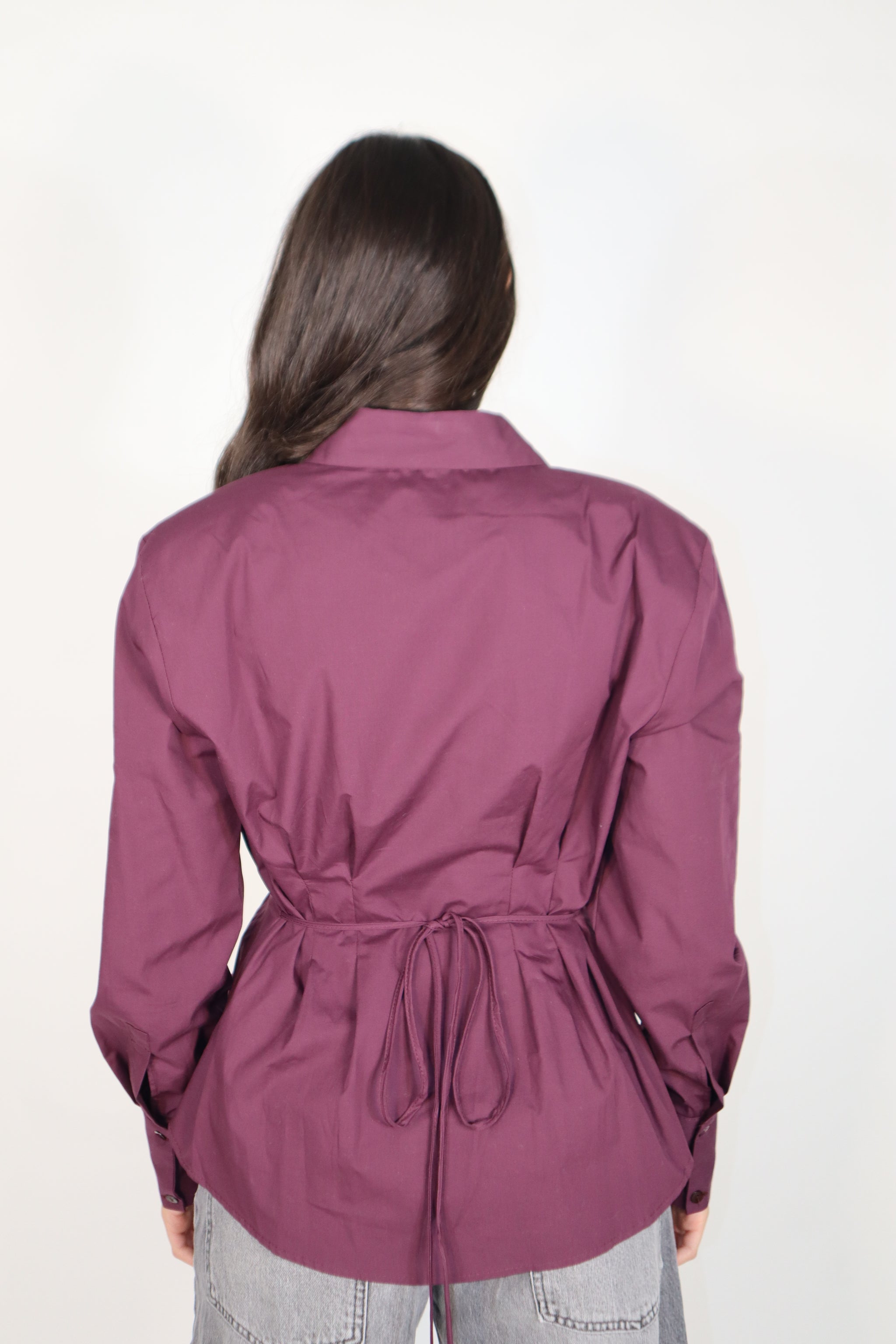 Camicia con spallina linea sfiancata con punto vita enfatizzato da pences e laccetto sulla schiena .