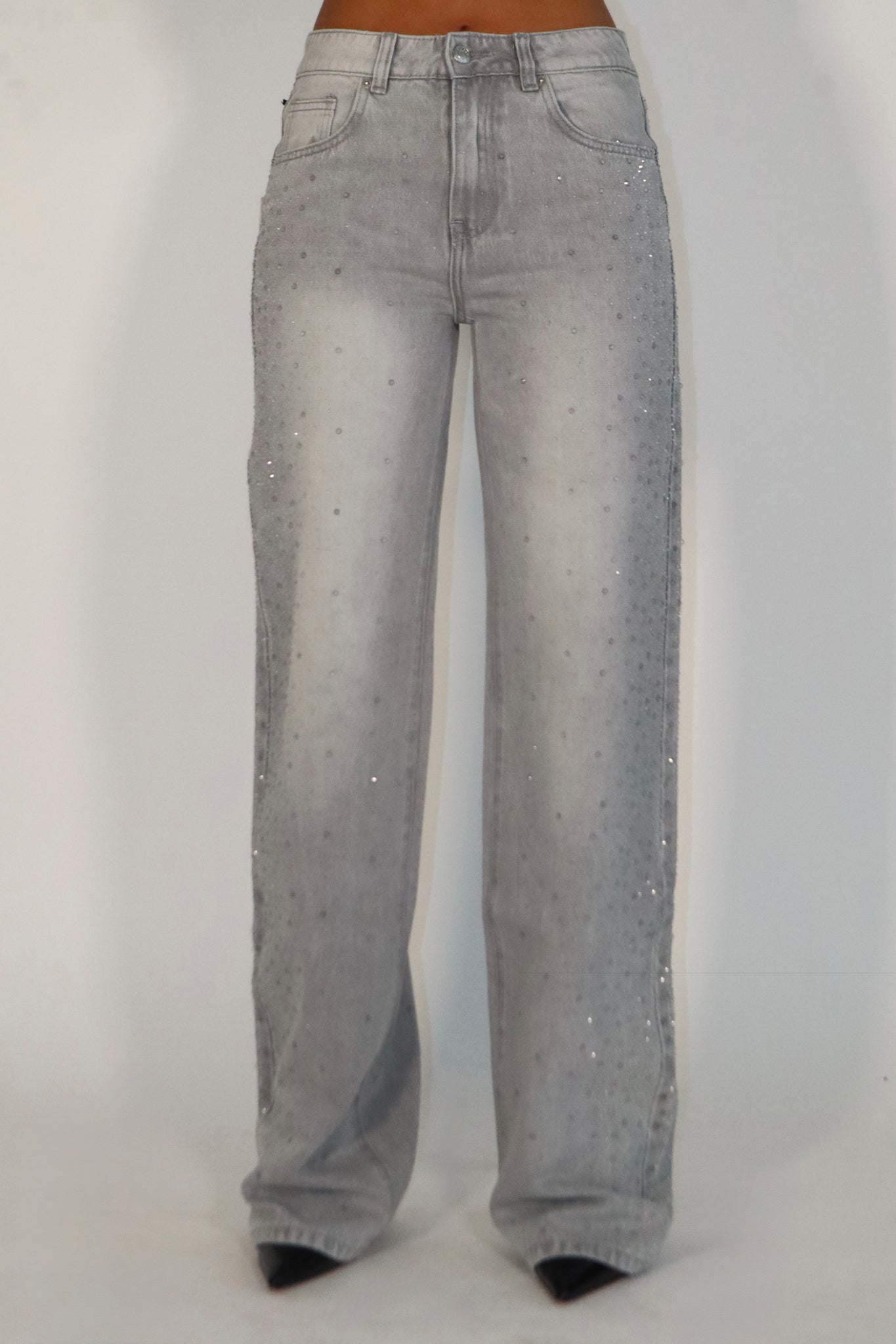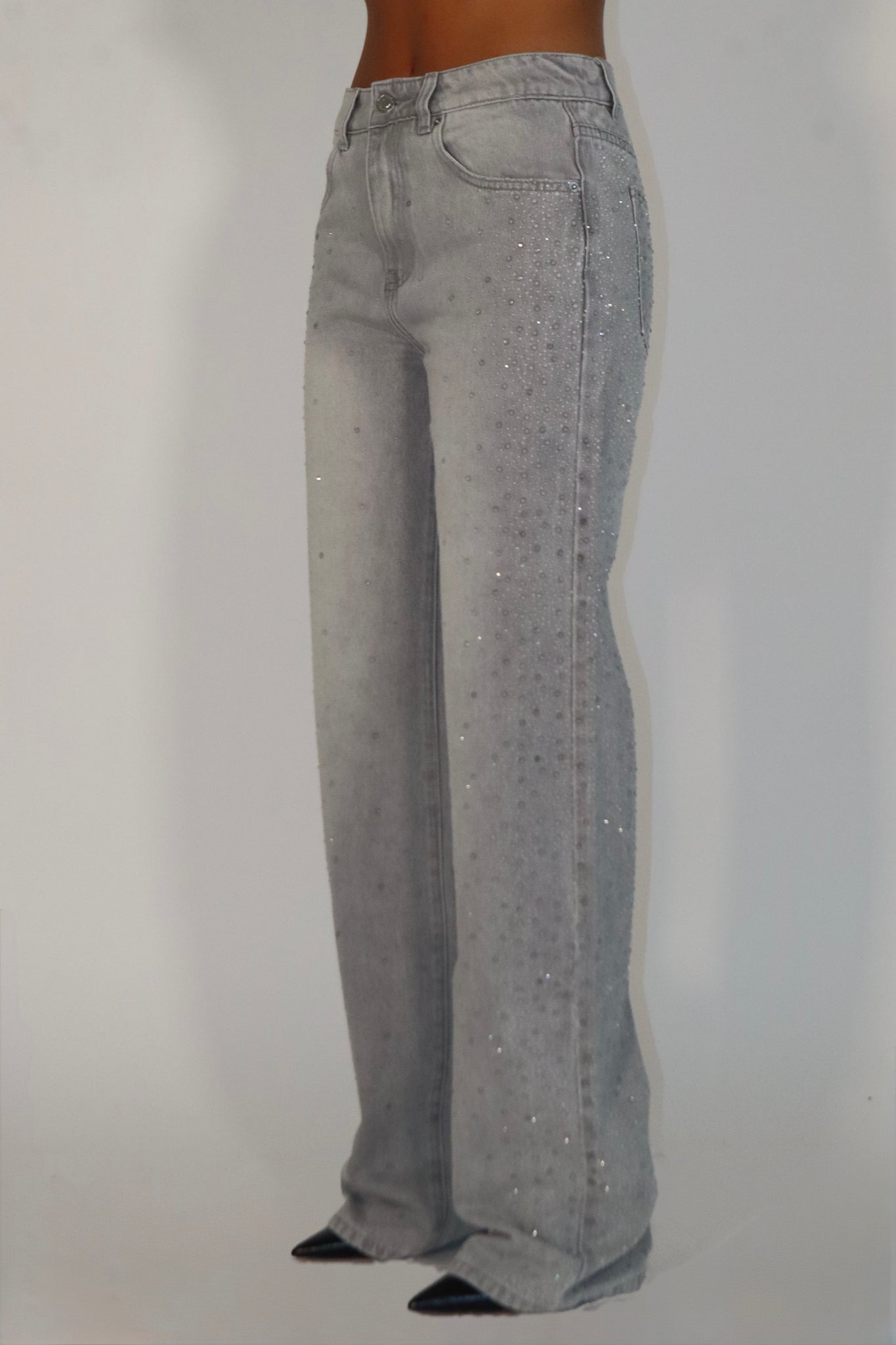 JEANS GRIGIO CON MICRO STRASS