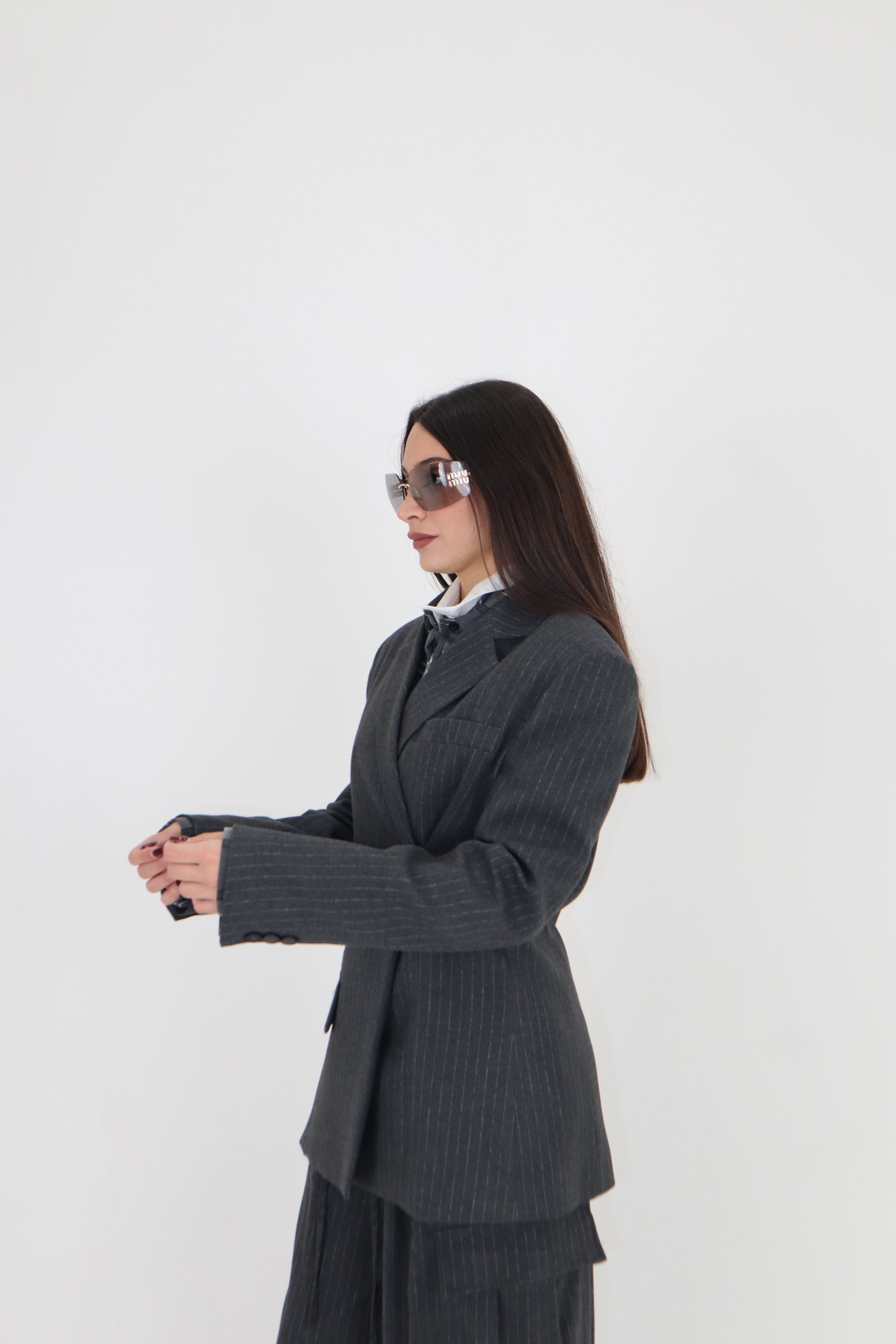Blazer in panno gessato doppiopetto con spallina imbottita.