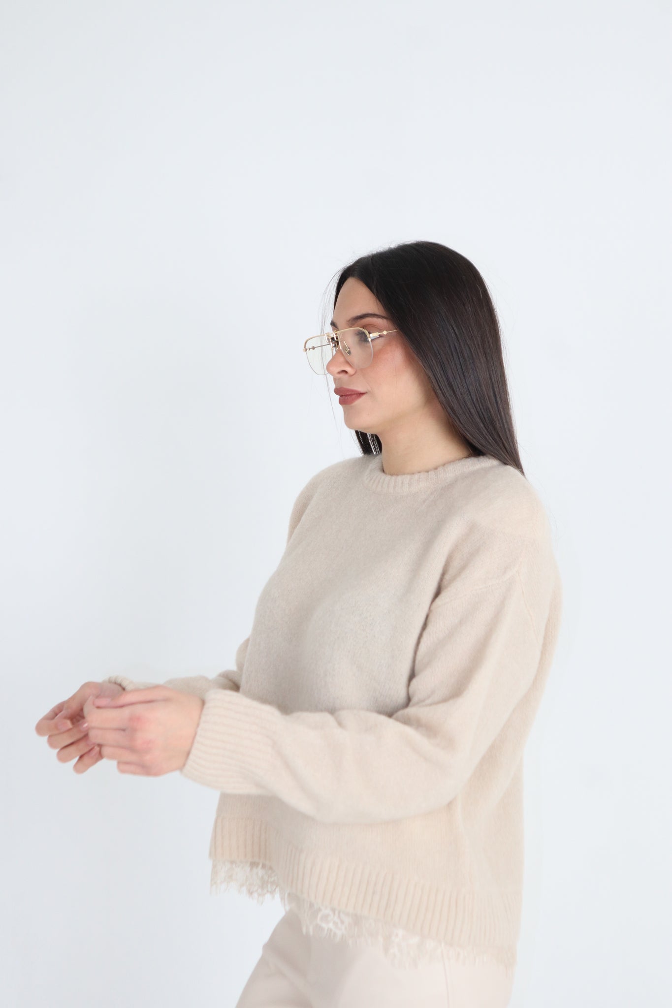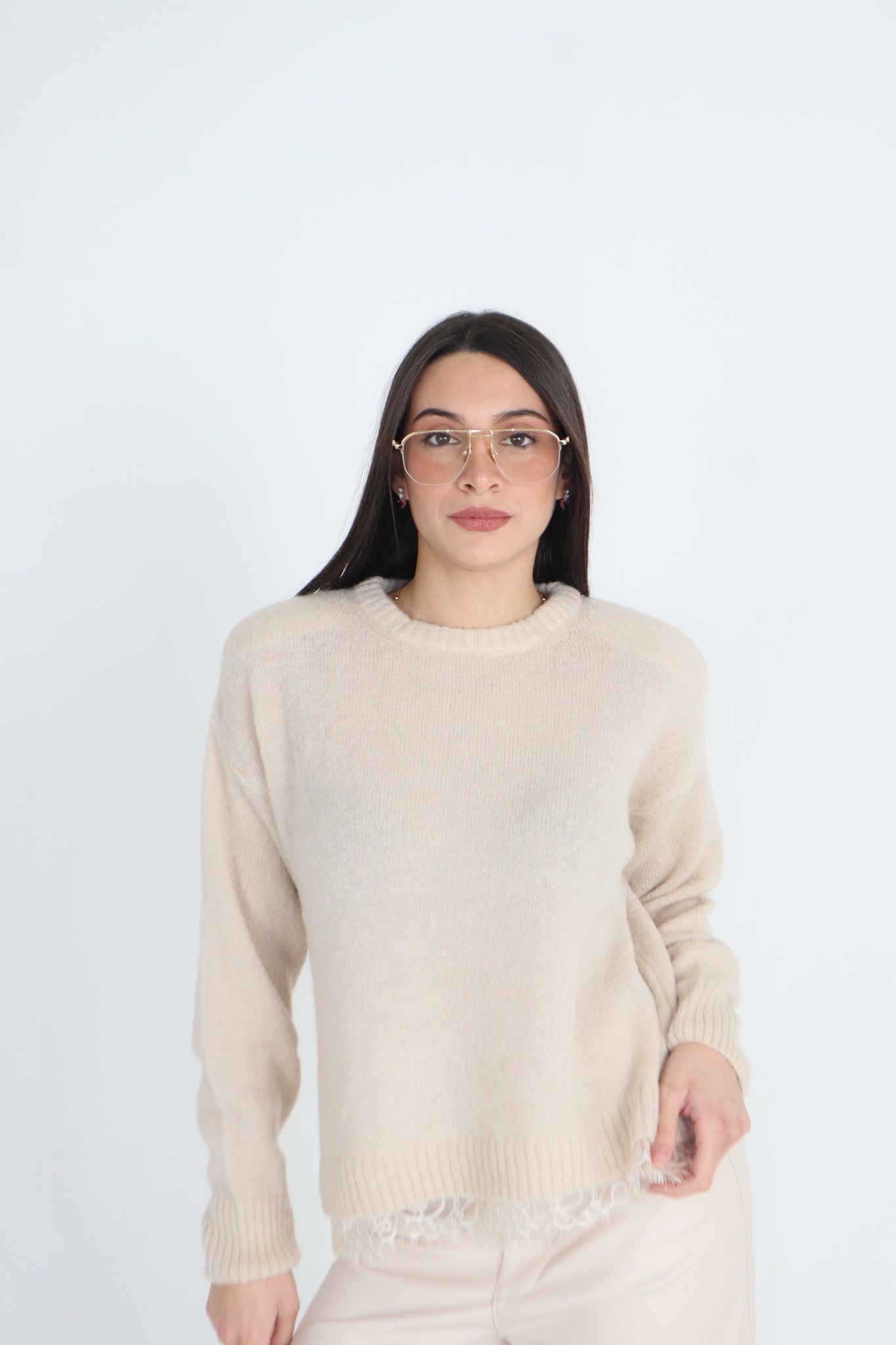 MAGLIONE CON SPALLINE E PIZZO