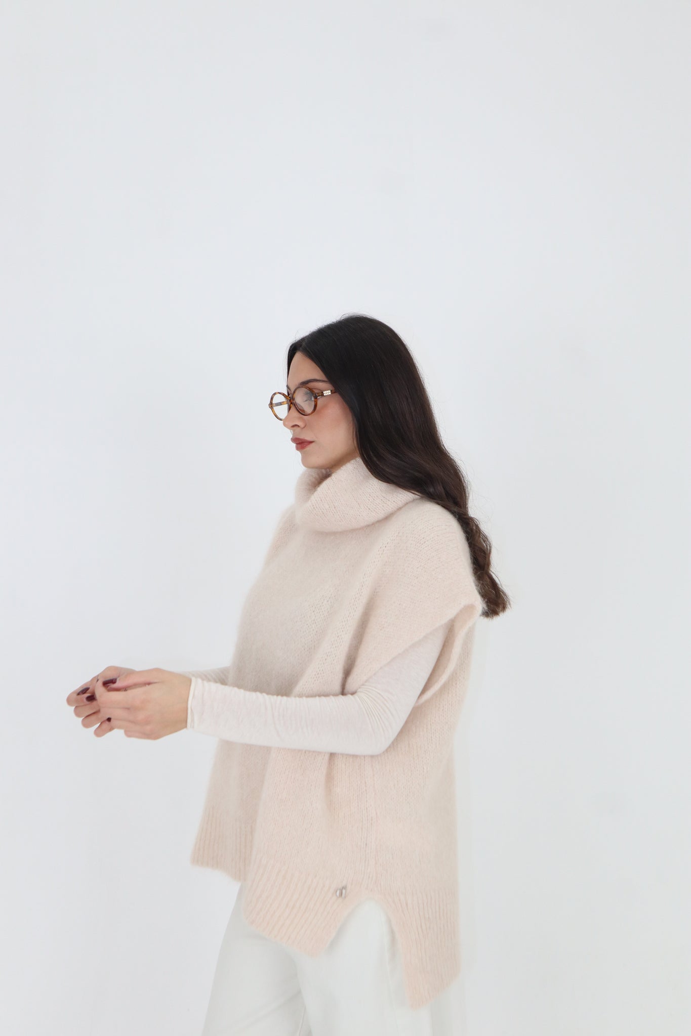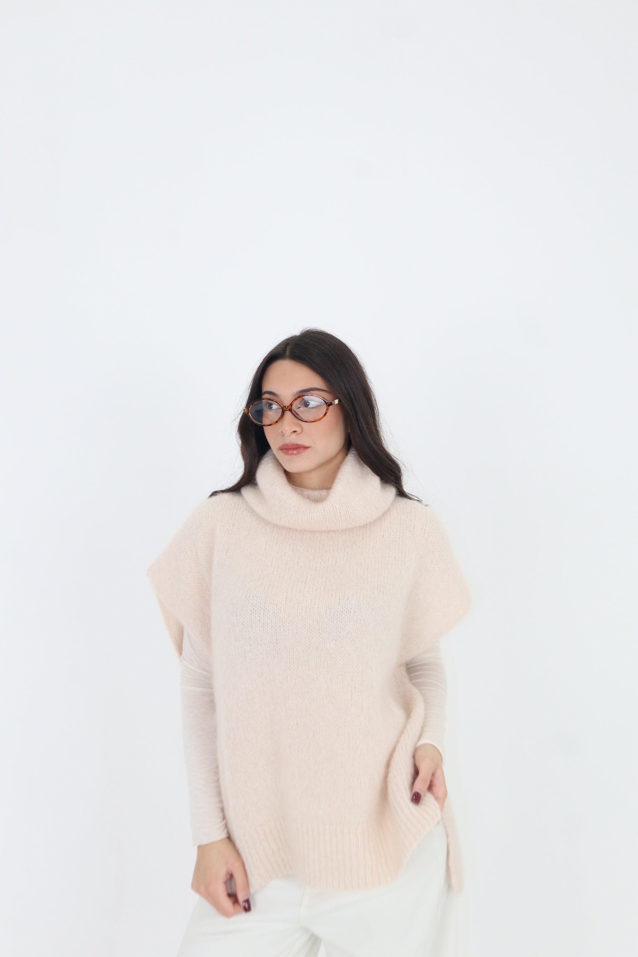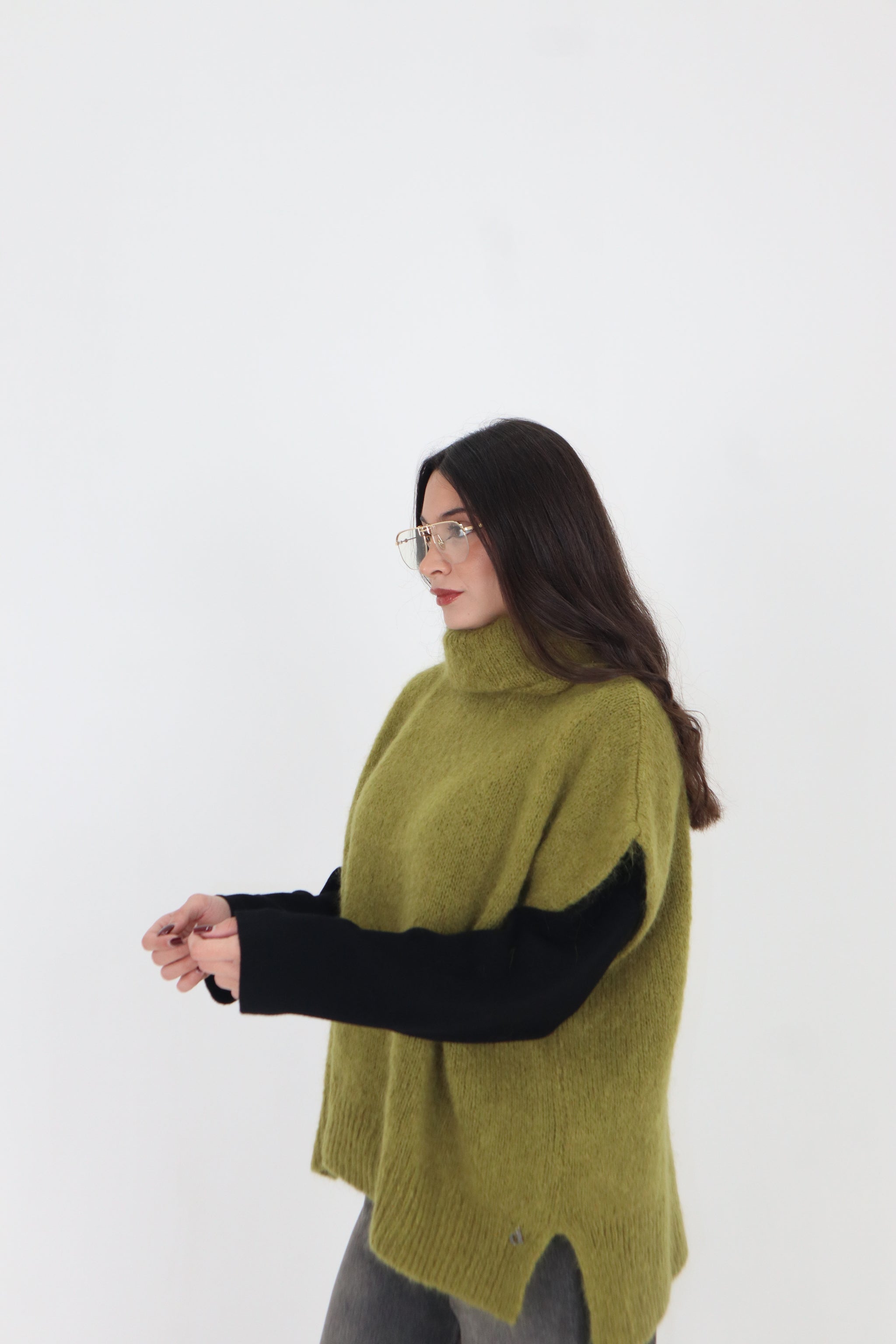 PULL SMANICATO COLLO ALTO