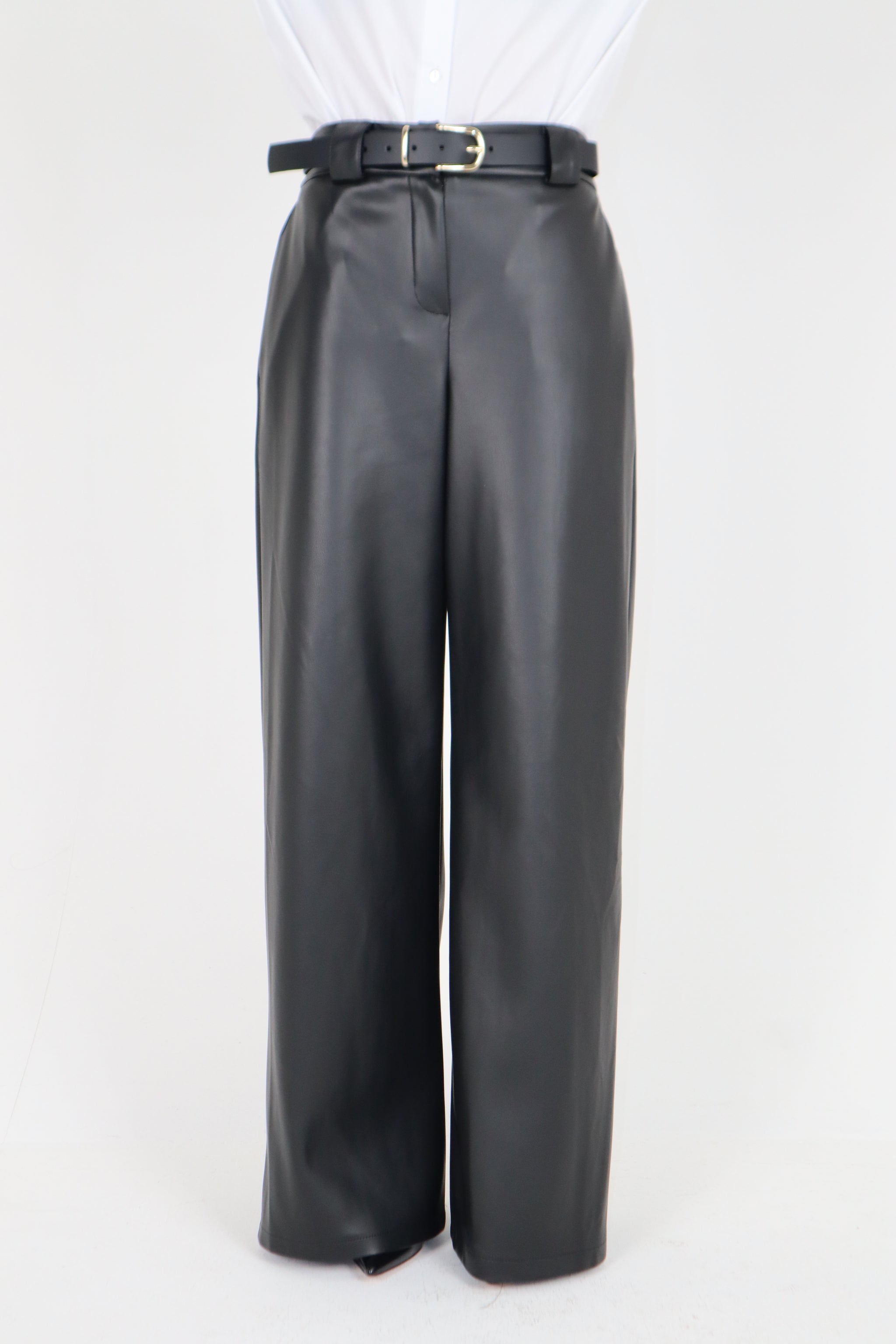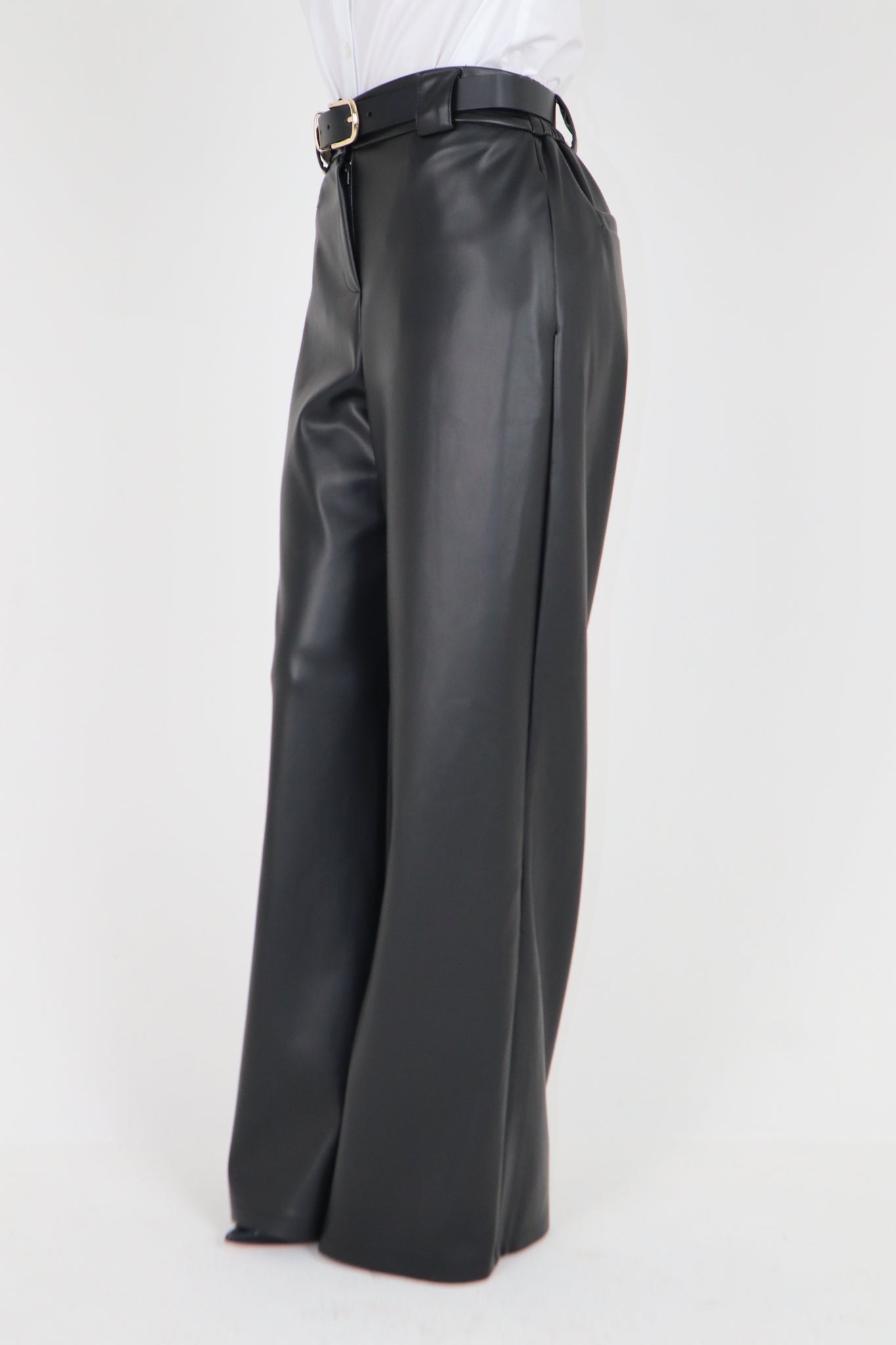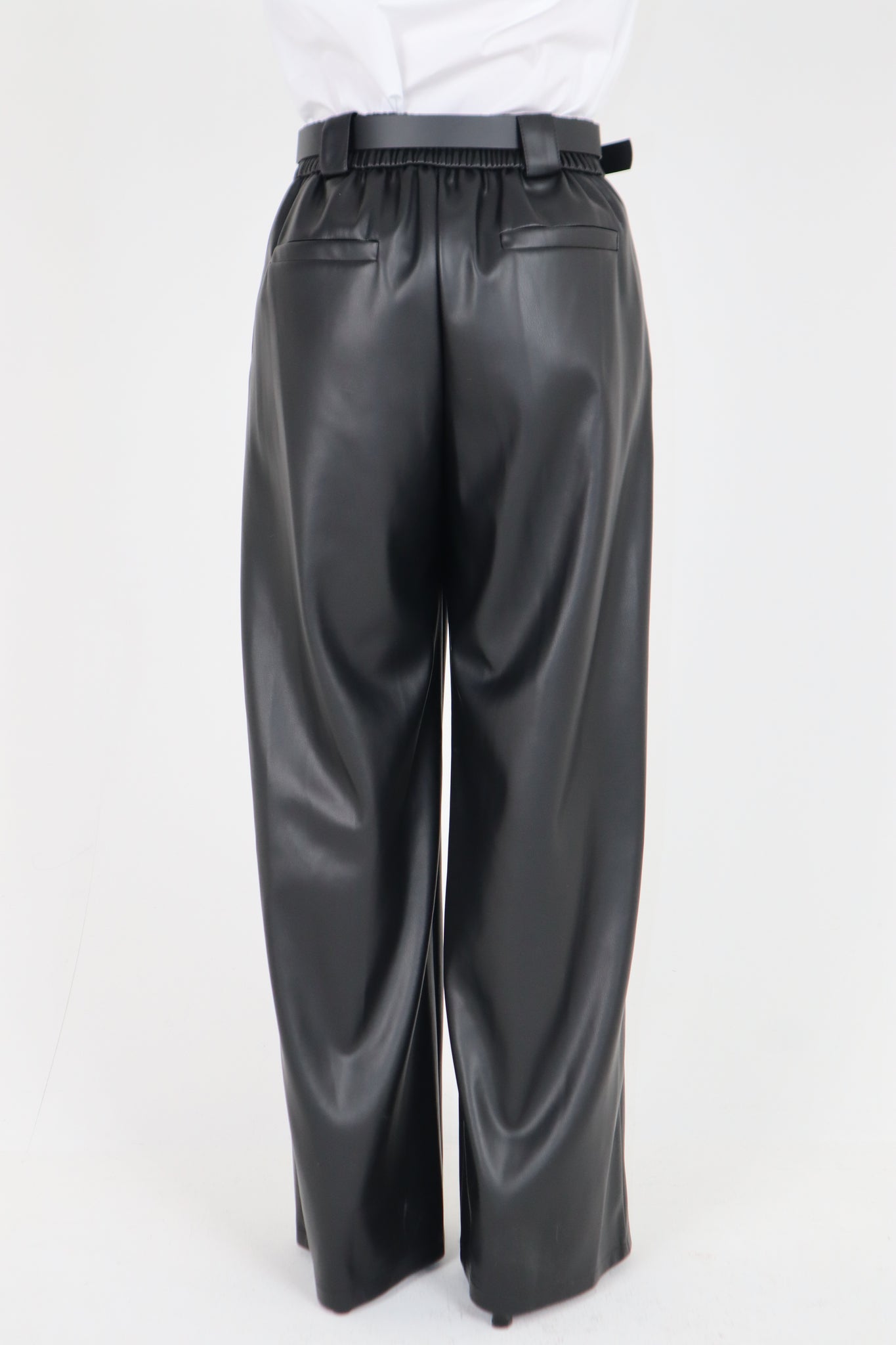 PANTALONE IN PELLE CON ELASTICO E CINTURA IN VITA