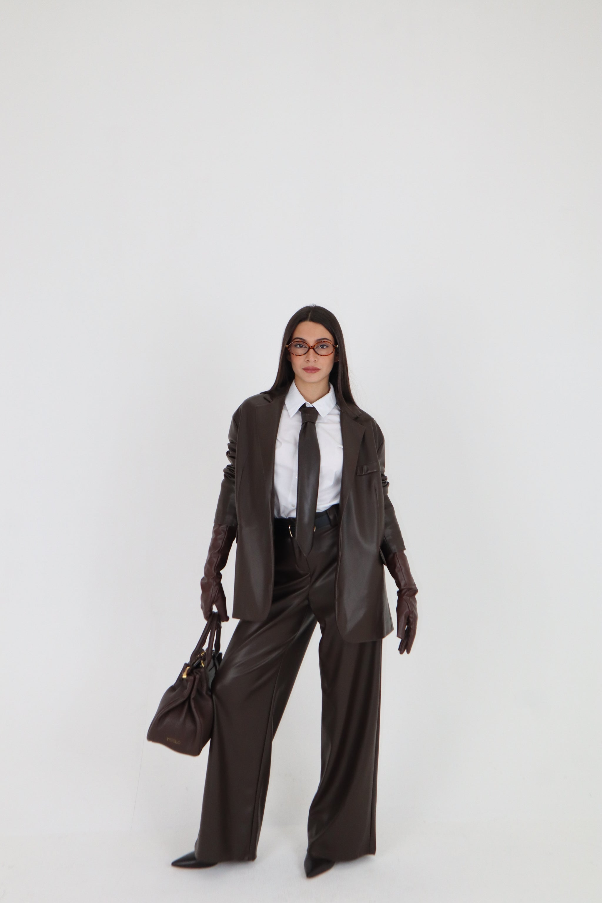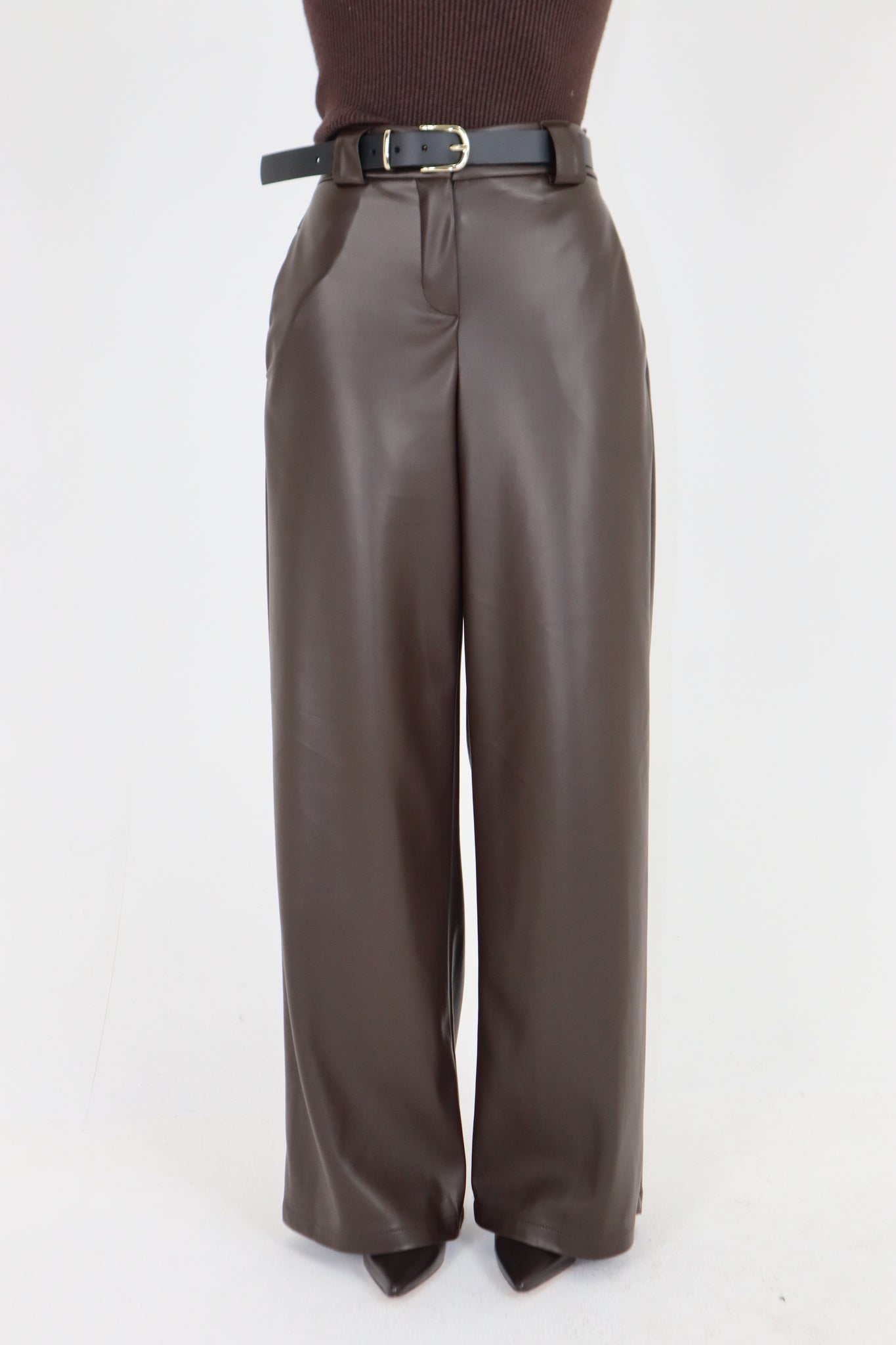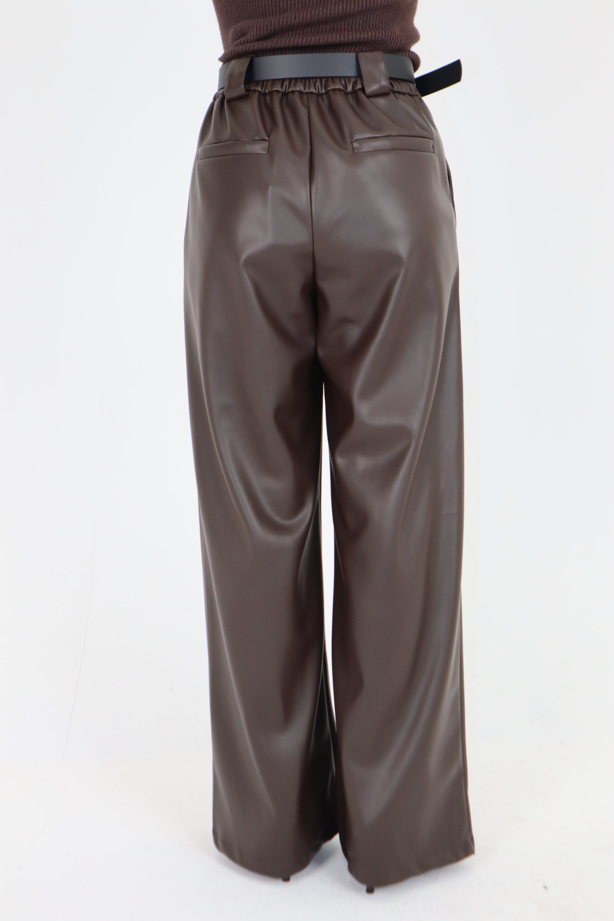 PANTALONE IN PELLE CON ELASTICO E CINTURA IN VITA