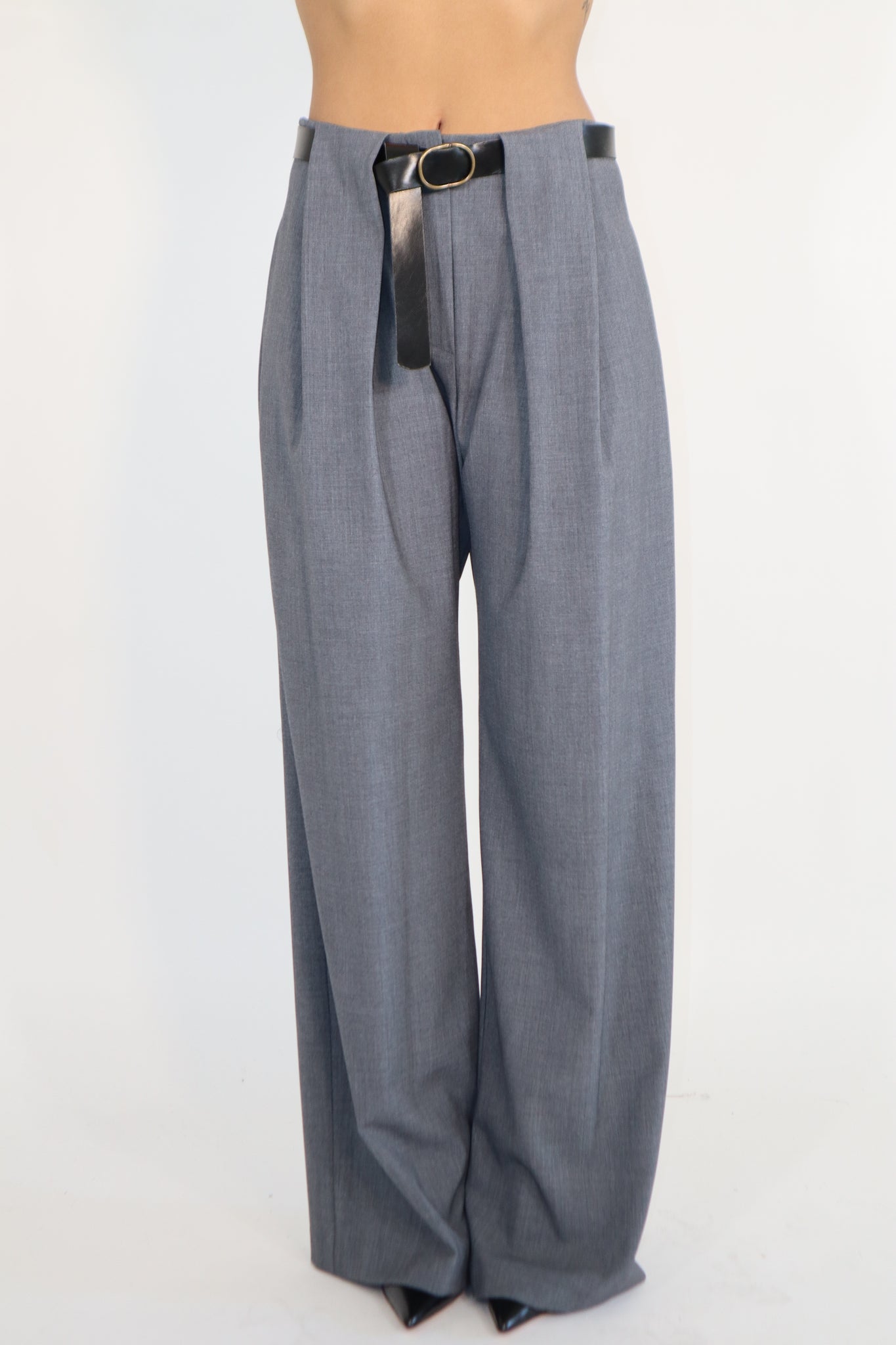 PANTALONE CON PENCES E CINTURA