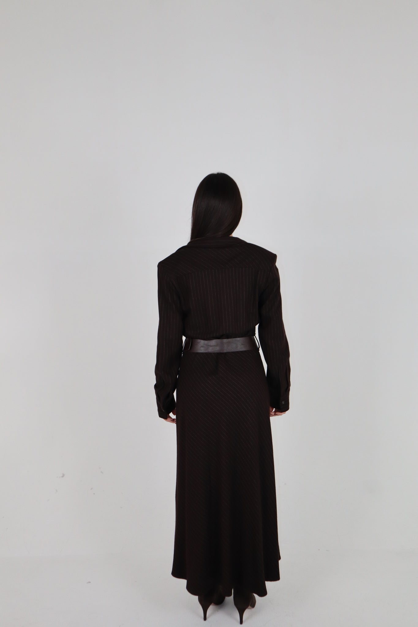 DRESS LUNGO GESSATO MORO CON SPALLINE E CINTURA