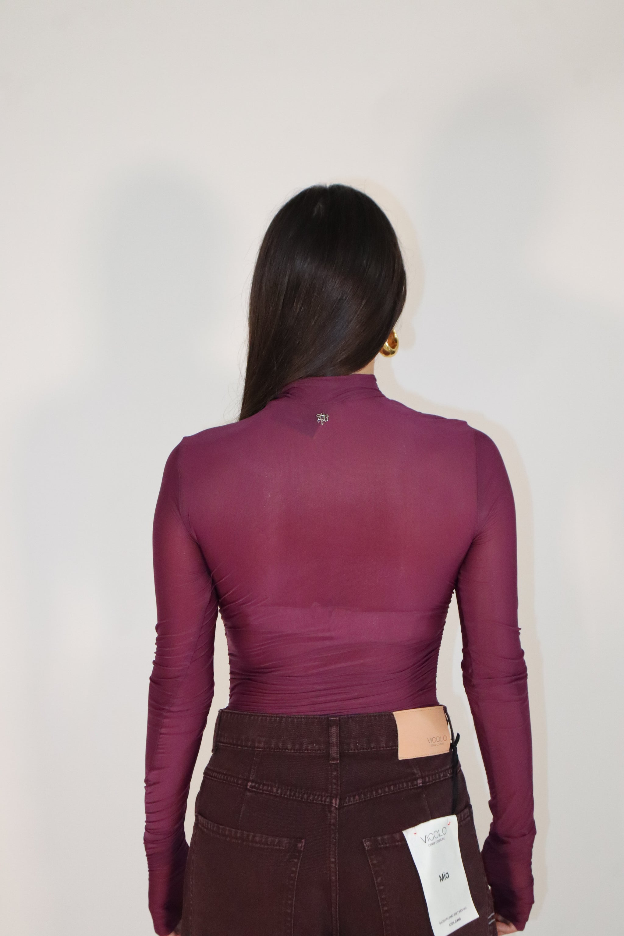 SECOND SKIN CON TWIST SCULTOREO. IL BODY SCANDAL SI CARATTERIZZA PER IL COLLO ALTO E LE MANICHE LUNGHE CHE CREANO UNA BASE ESSENZIALE, MENTRE IL DRAPPEGGIO FRONTALE SCOLPISCE IL PUNTO VITA CON PRECISIONE E PROFONDITÀ. IL TESSUTO STRETCH ADERISCE SENZA COSTRINGERE, MODELLANDO LA FIGURA COME UNA SECONDA PELLE.
