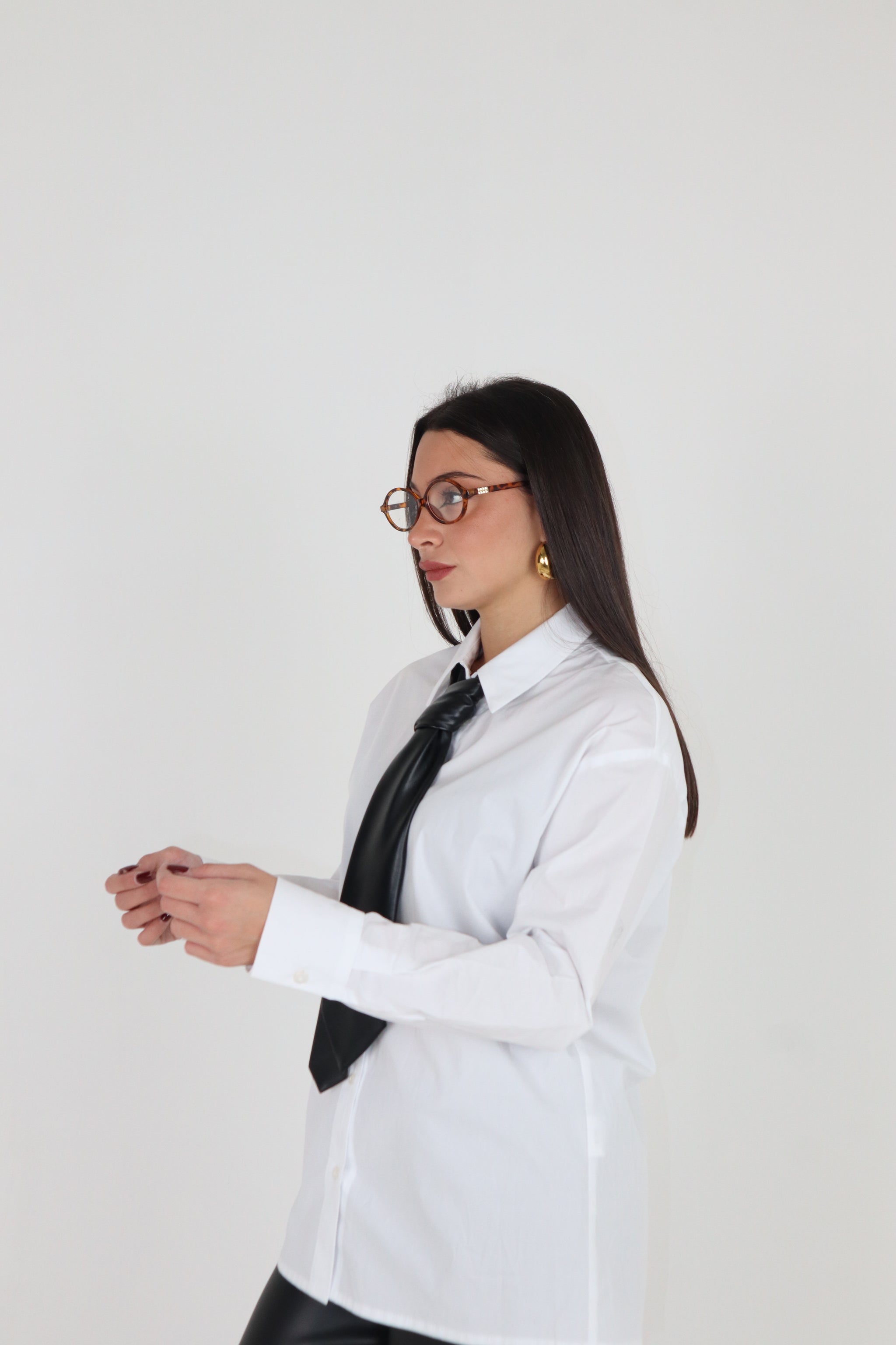 Camicia cravatta basic regular fit , cravatta in ecopelle