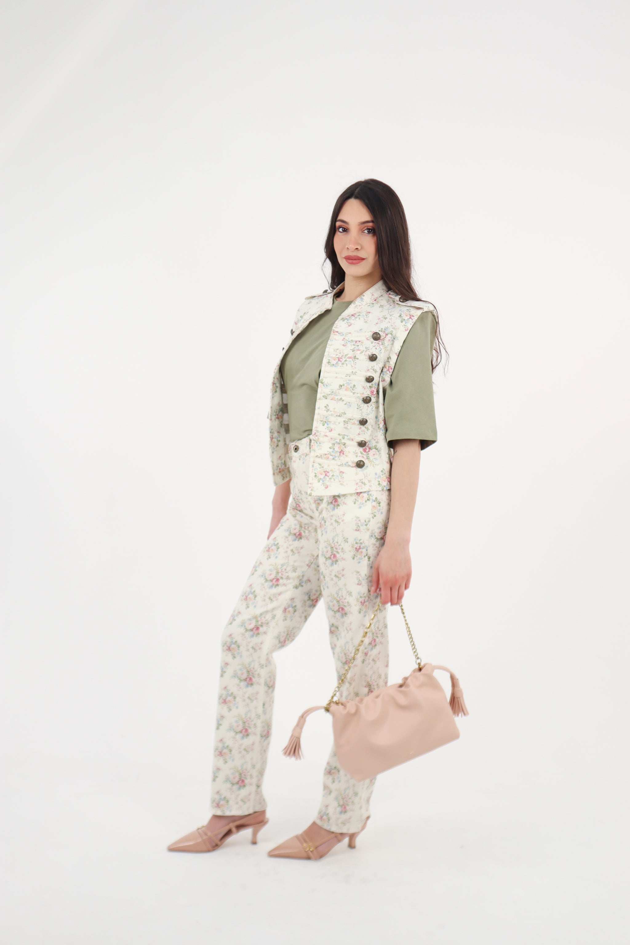 Il Gilet Margot Floreal presenta un design con fantasia floreale, caratterizzato da un'abbottonatura in stile Maryjane. Questo capo unisce estetica e funzionalità, offrendo un'alternativa versatile per abbellire il guardaroba. Realizzato con materiali di qualità, garantisce comfort e durata nel tempo.