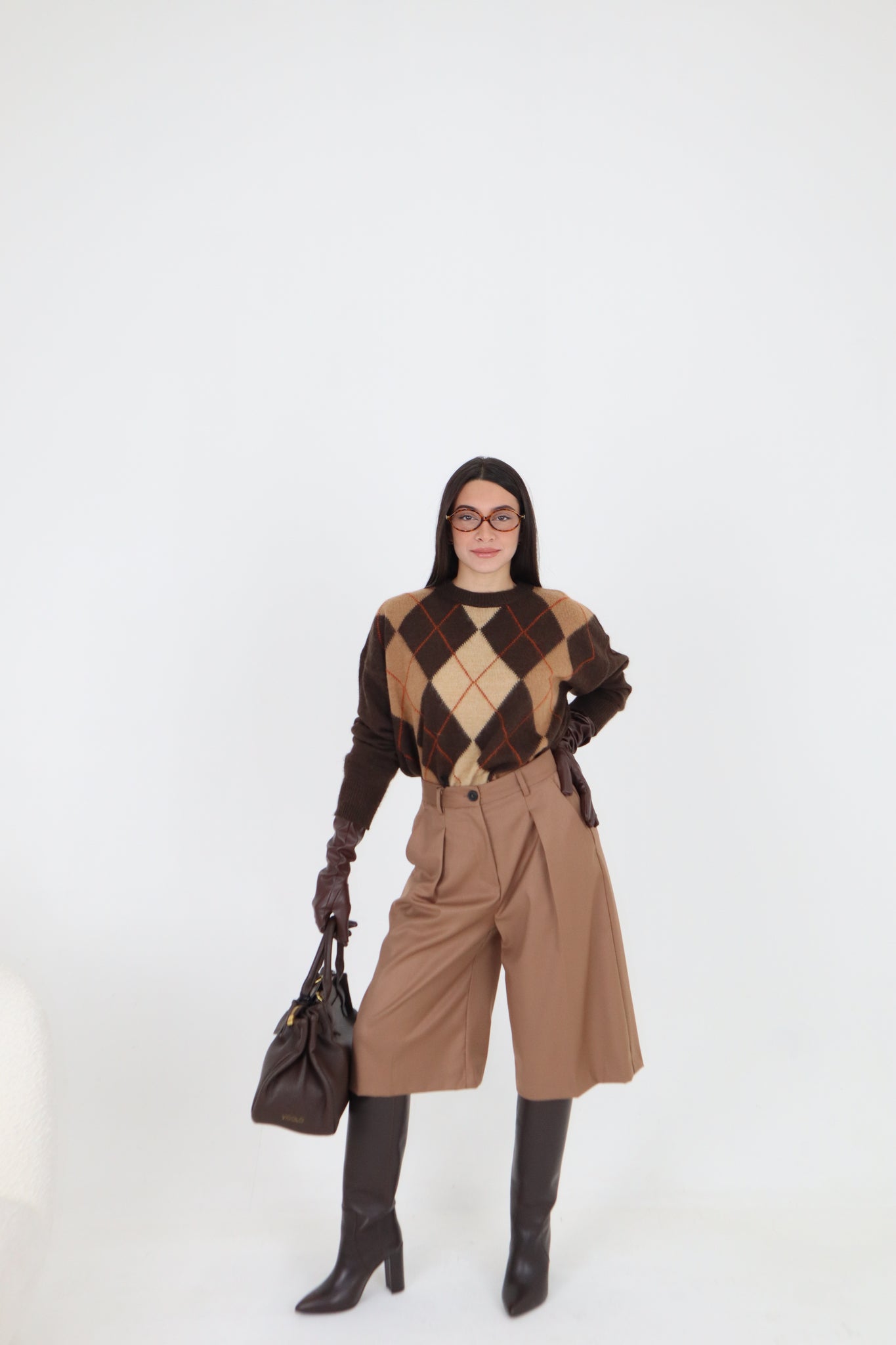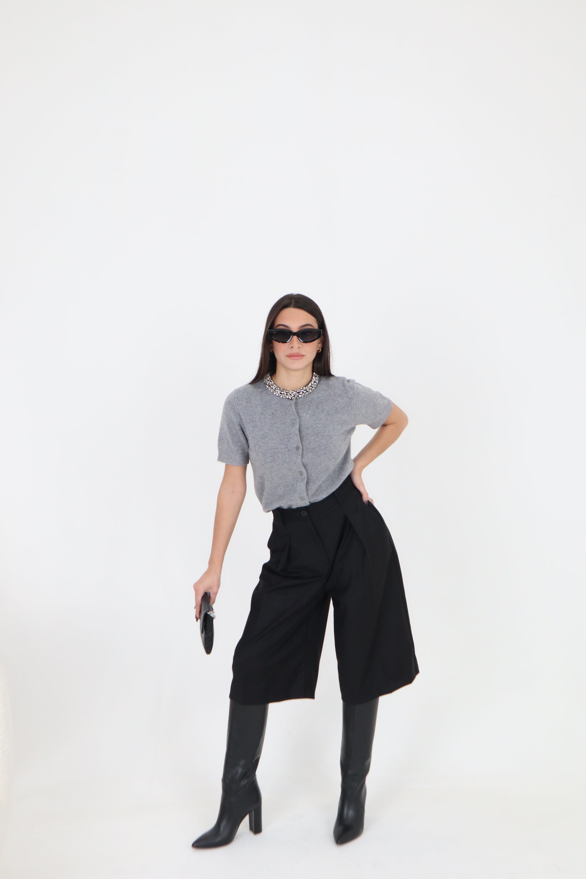 Bermuda con pence , bustino fermo . Vestibilità regolare