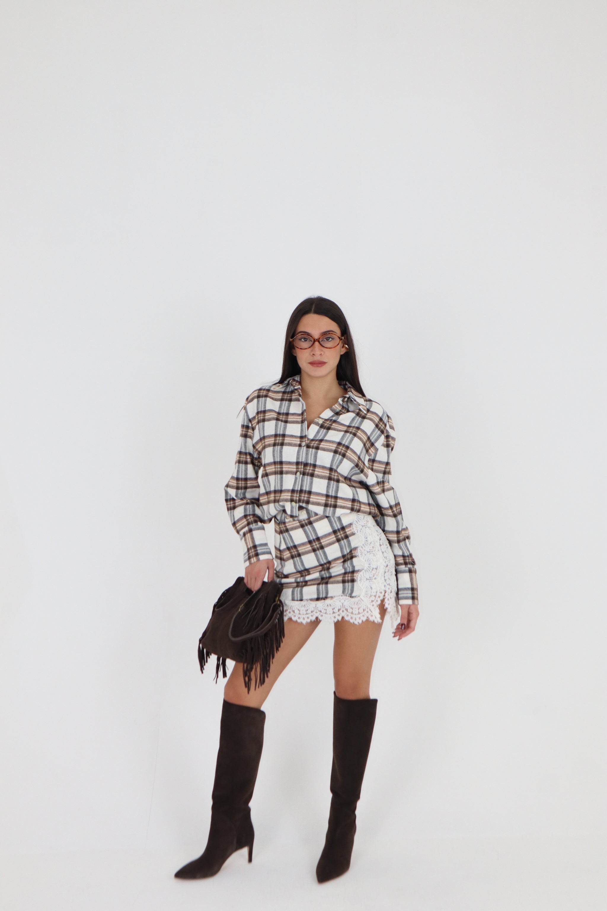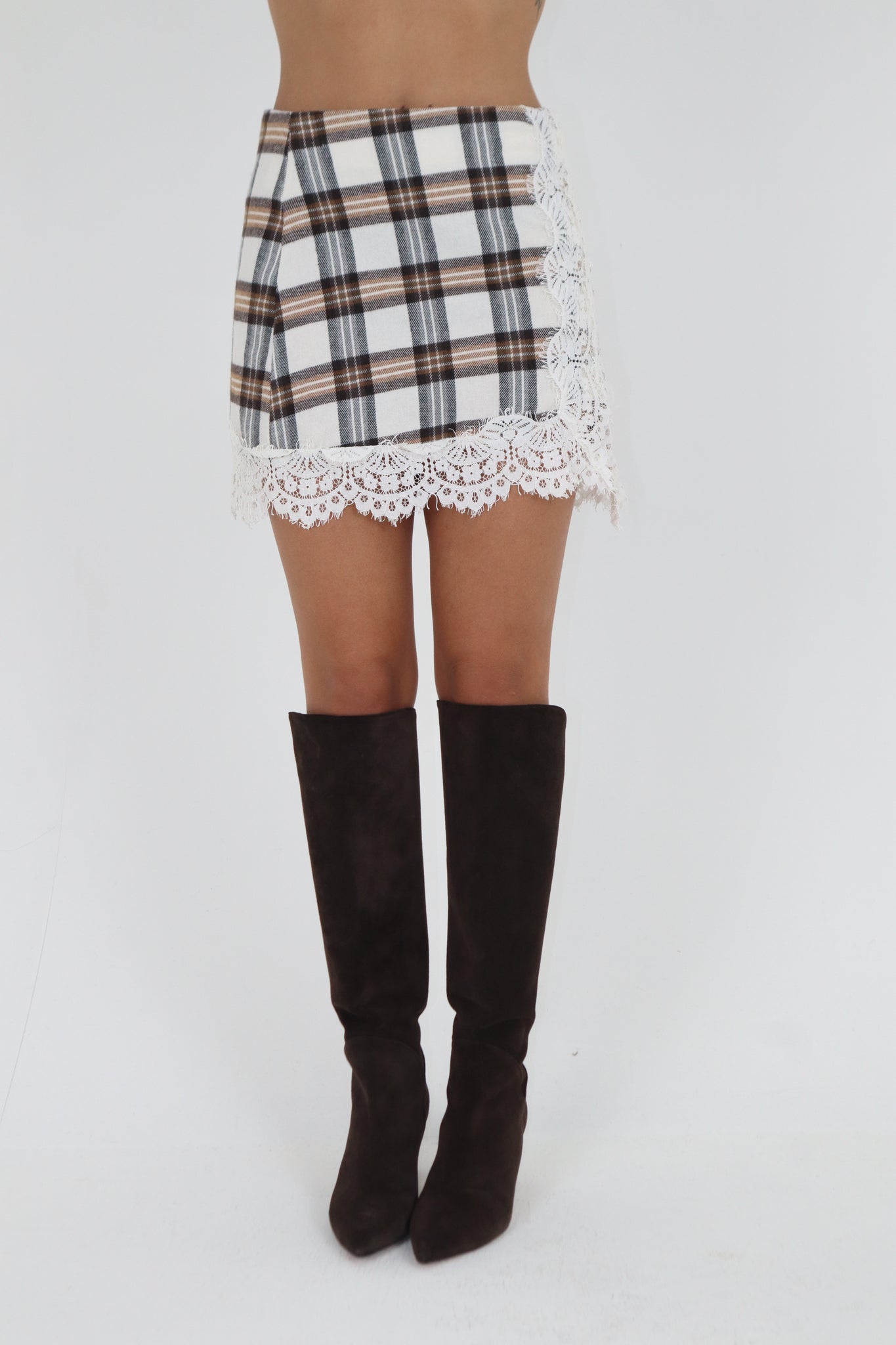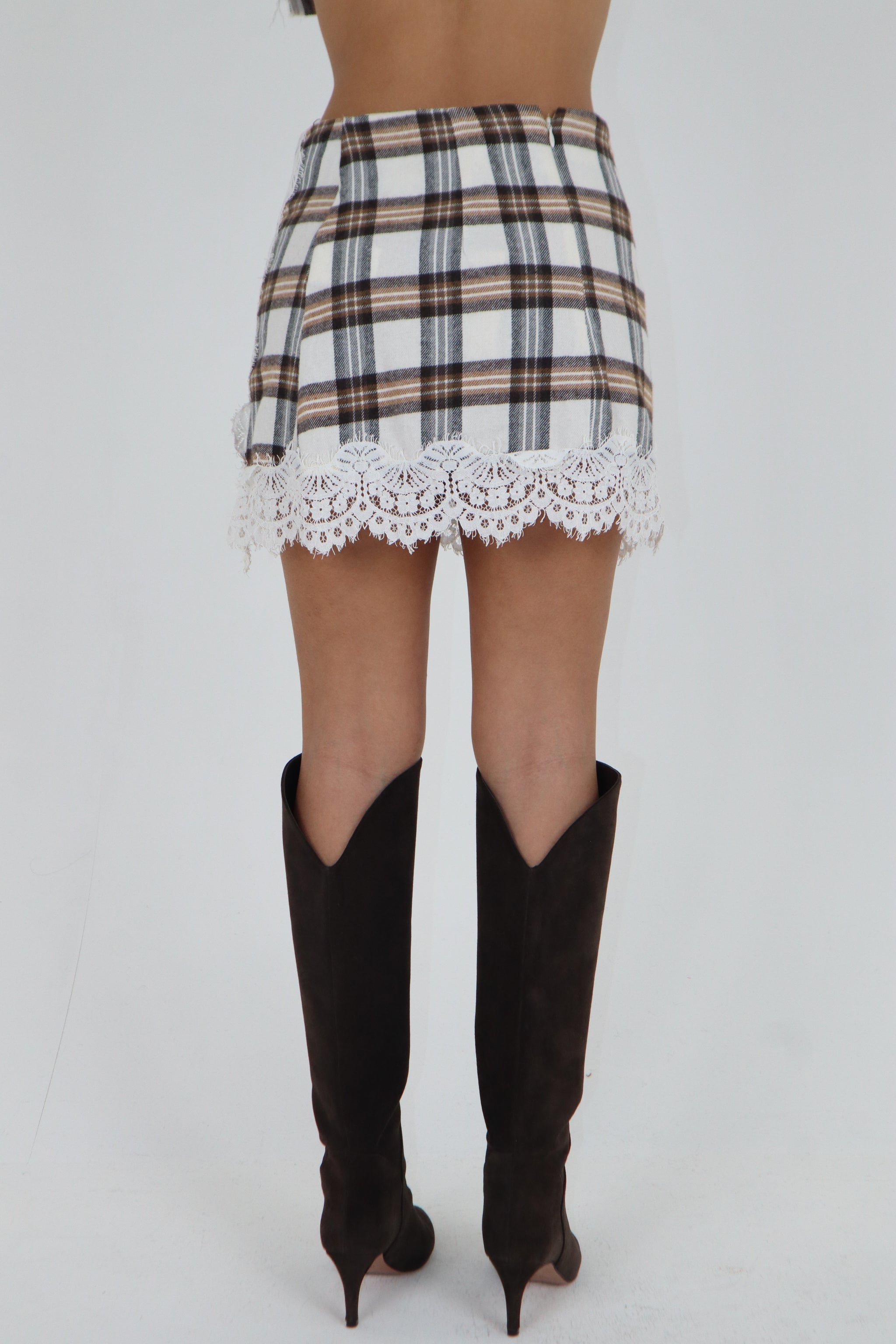 MINIGONNA CON INSERTI IN PIZZO MORO