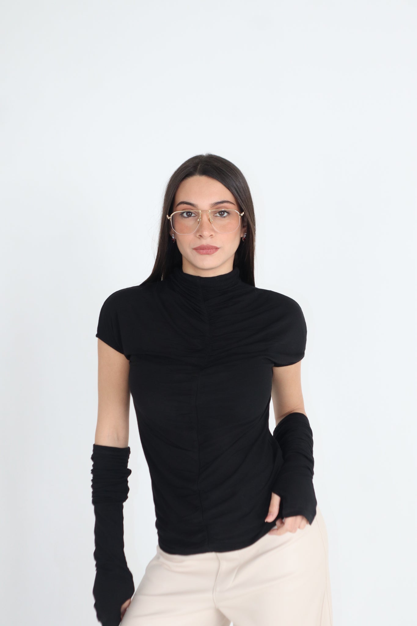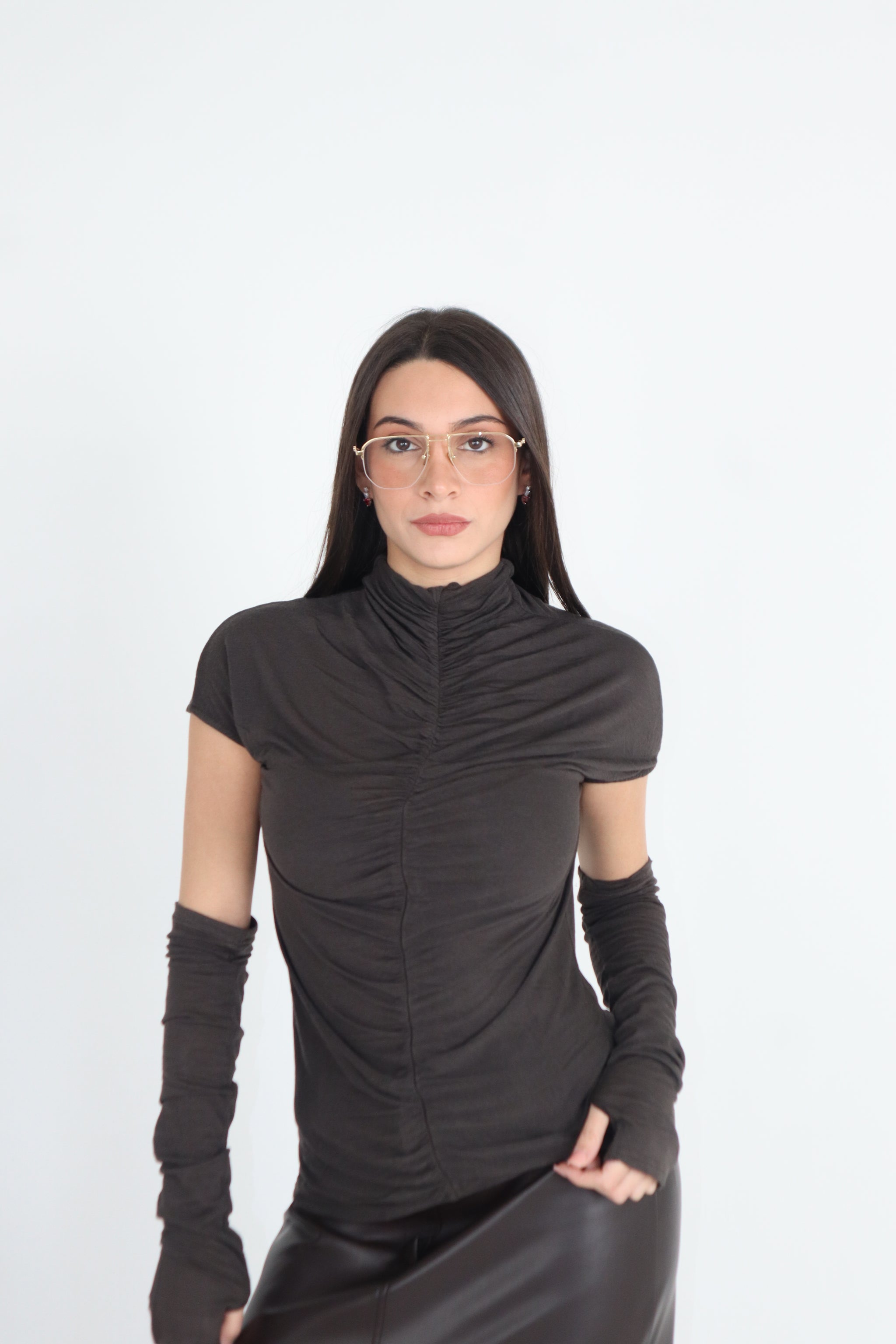 MAGLIA ARRICCIATA SCOLLO CRATERE CON MANICOTTI