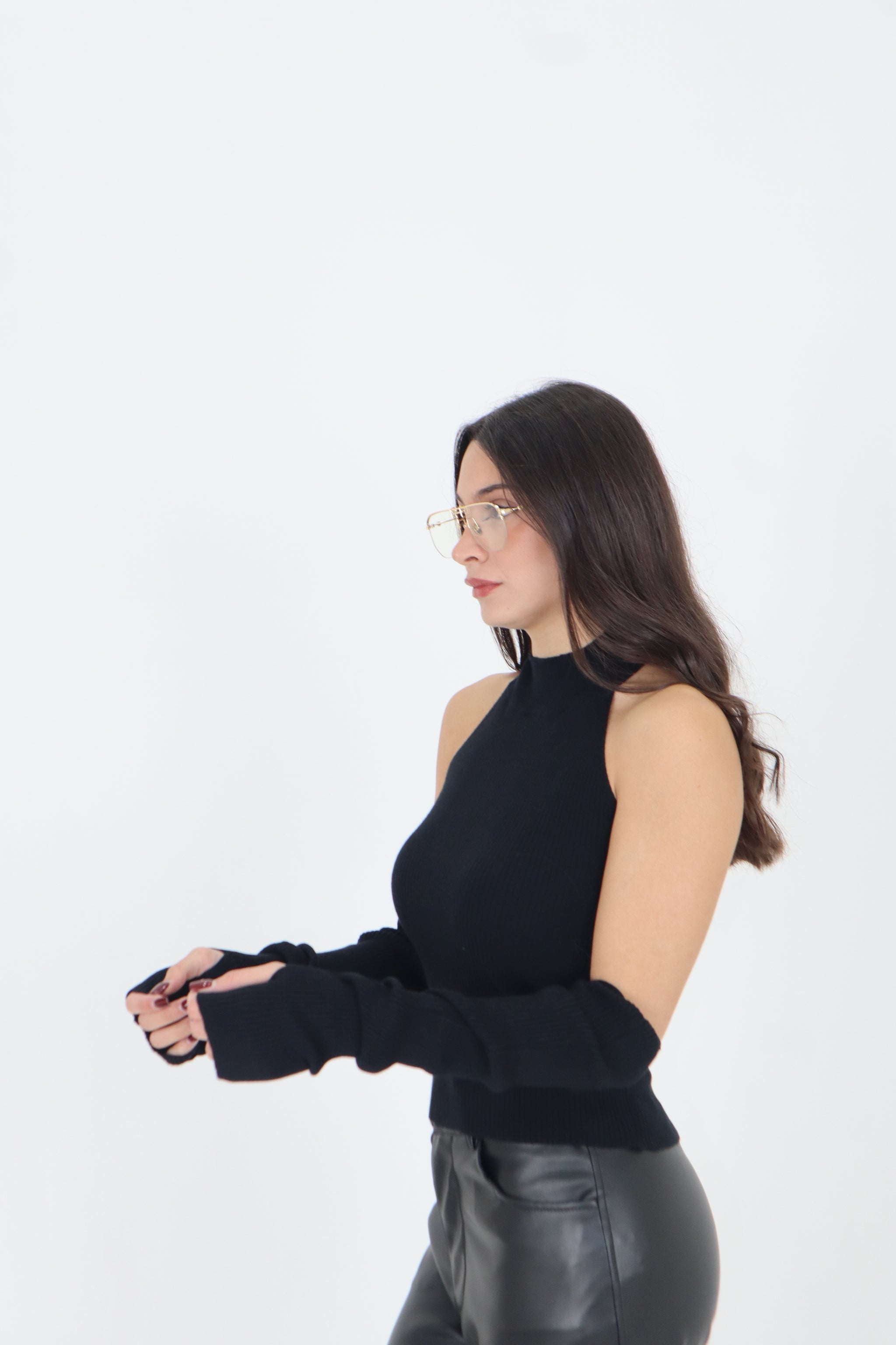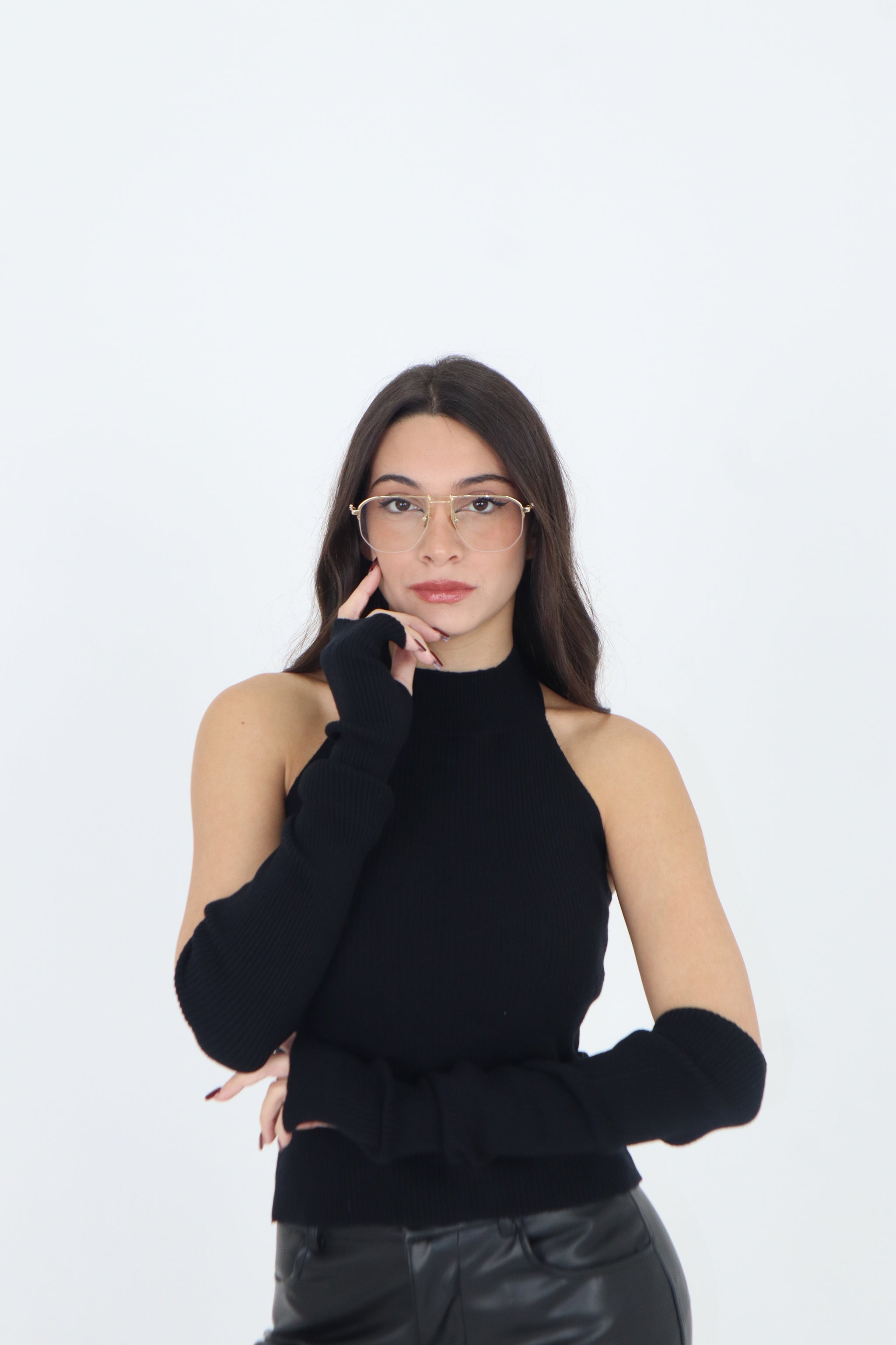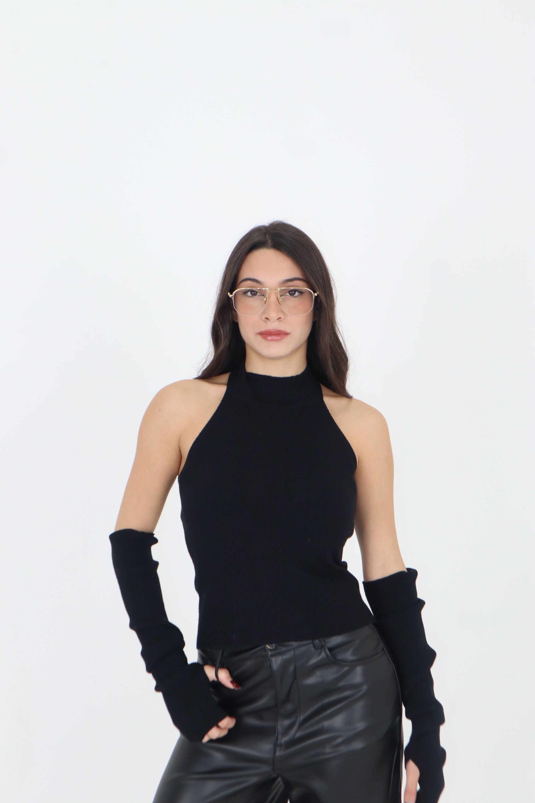 MAGLIA SMANICATA PIZZO SUL RETRO E MANICOTTI