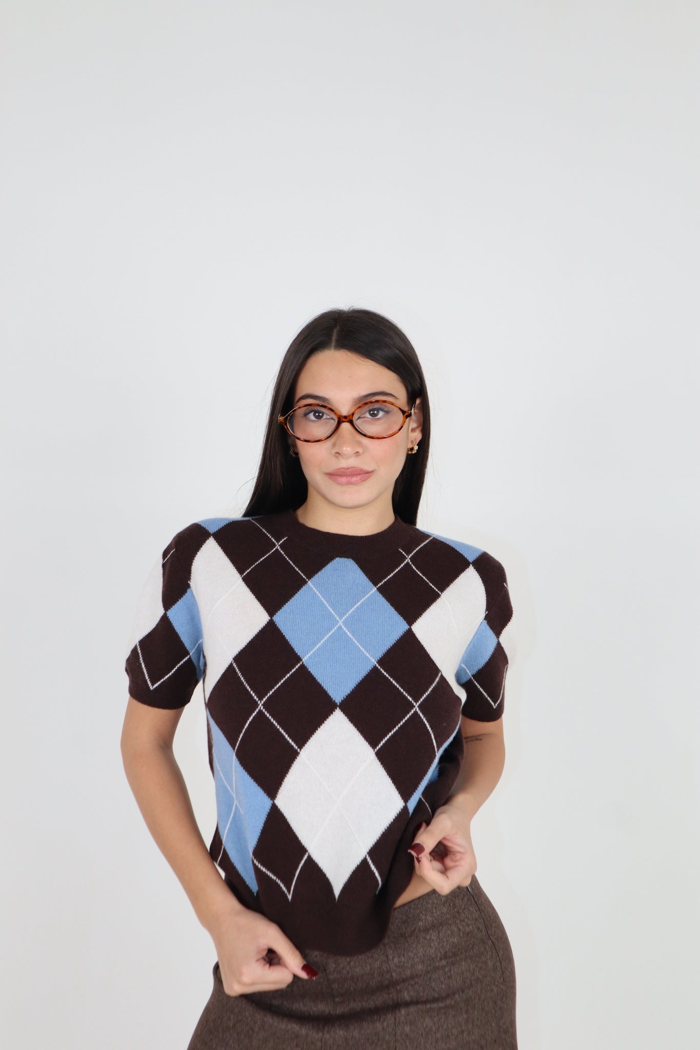 MAGLIA ROMBI MORO, CIELO E PANNA