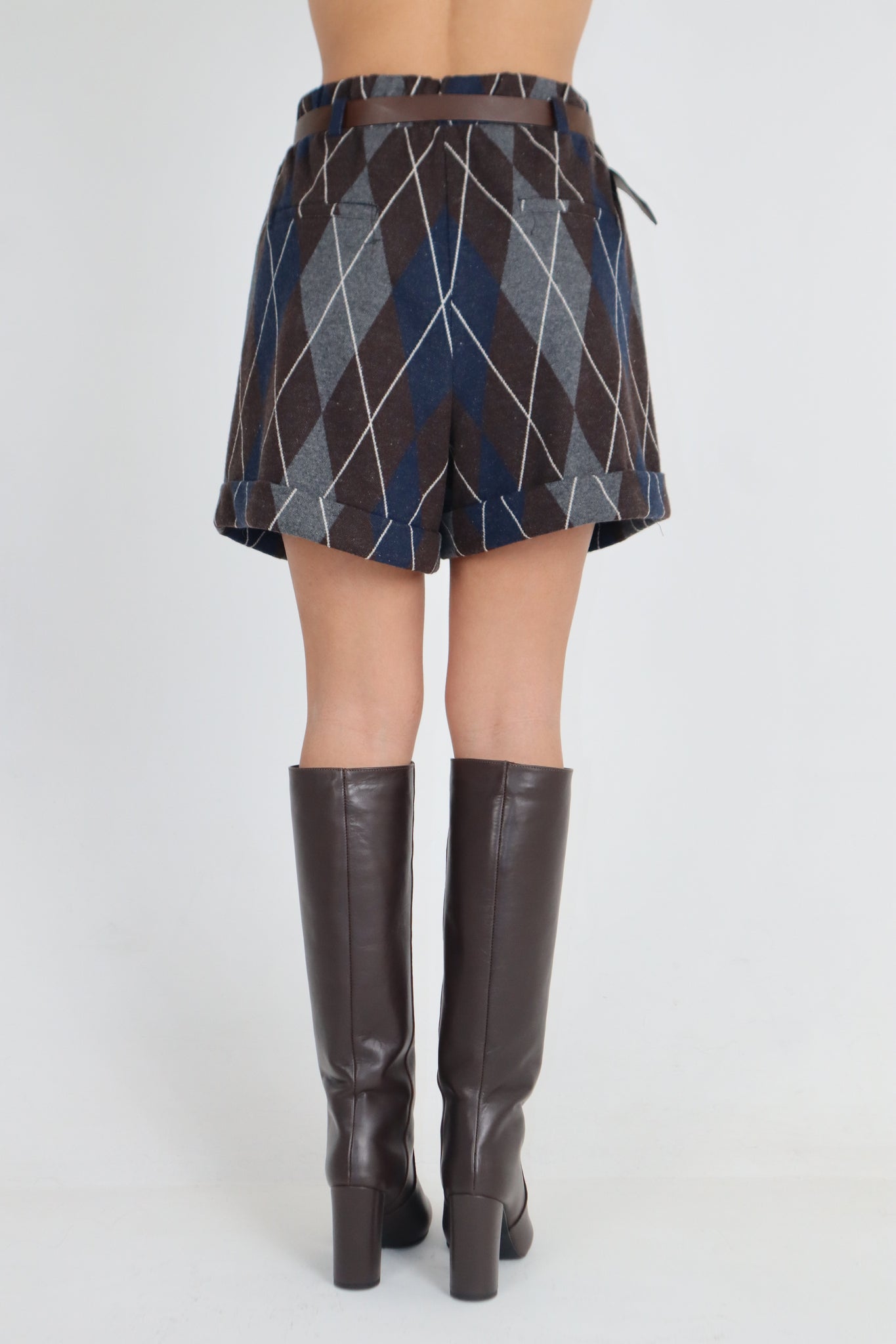 SHORT ROMBI CON CINTURA ED ELASTICO IN VITA