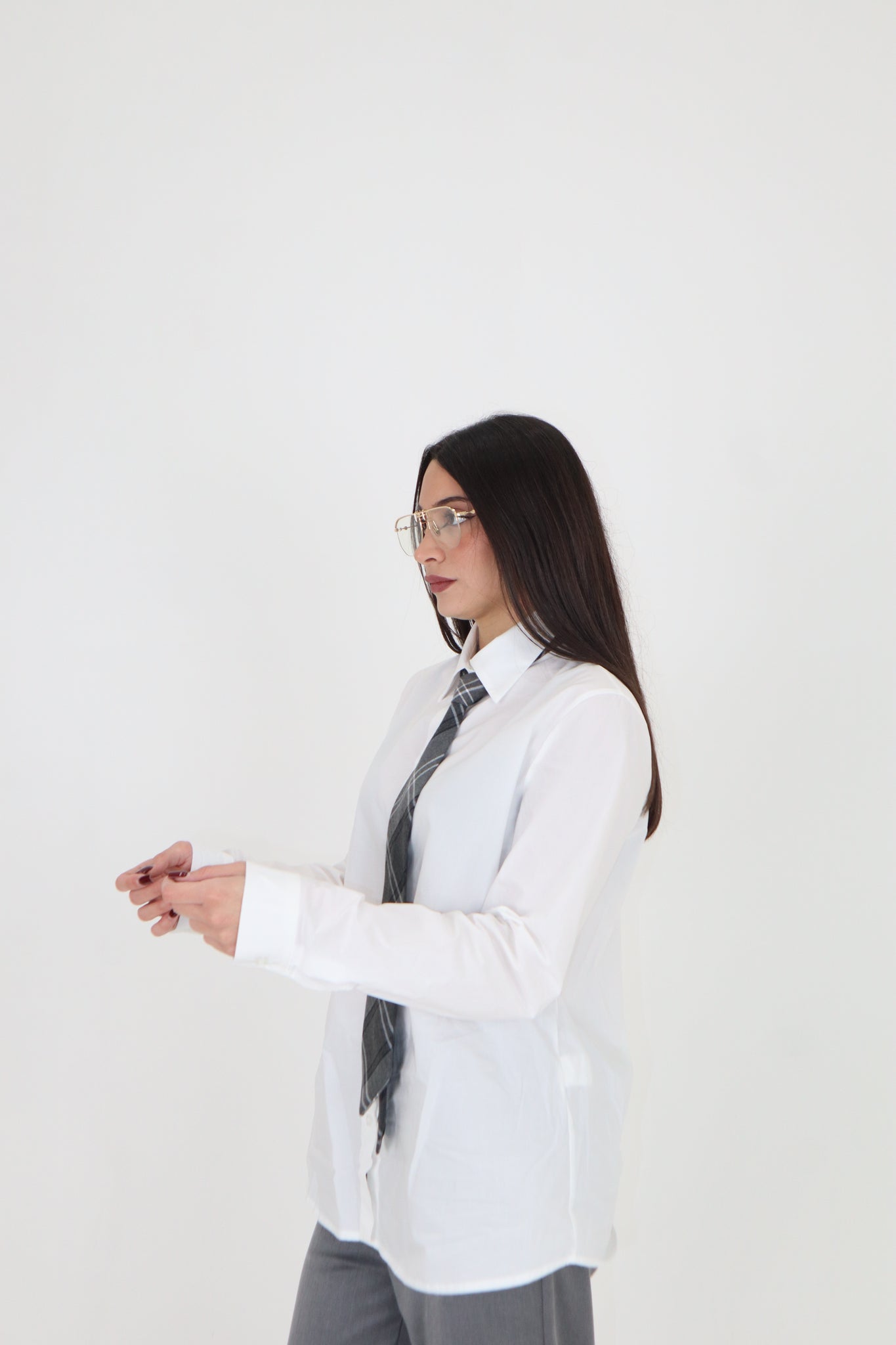 CAMICIA BIANCA CON CRAVATTA GRIGIA