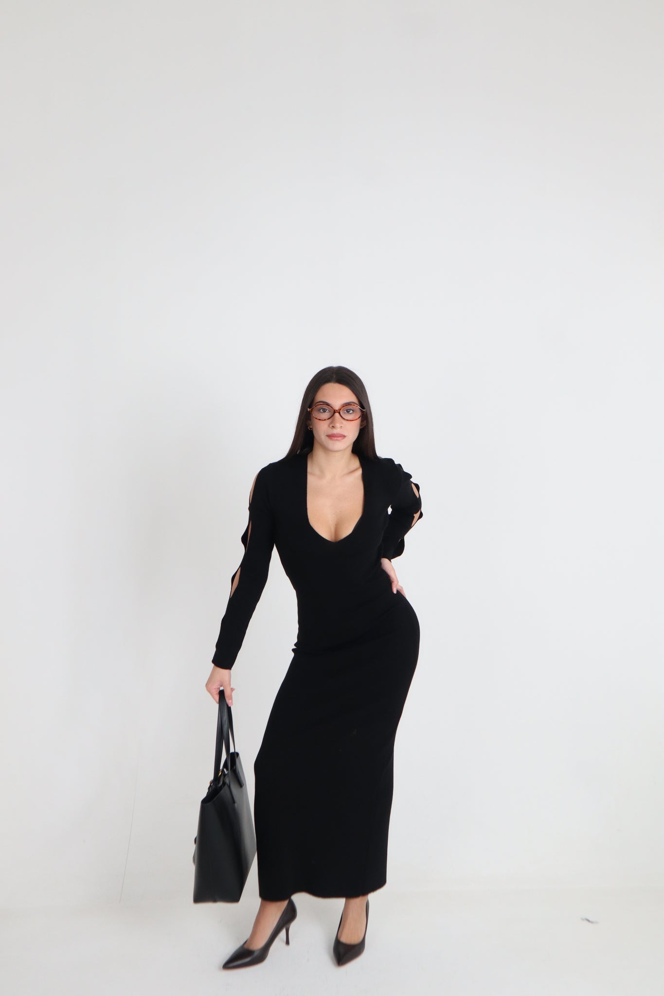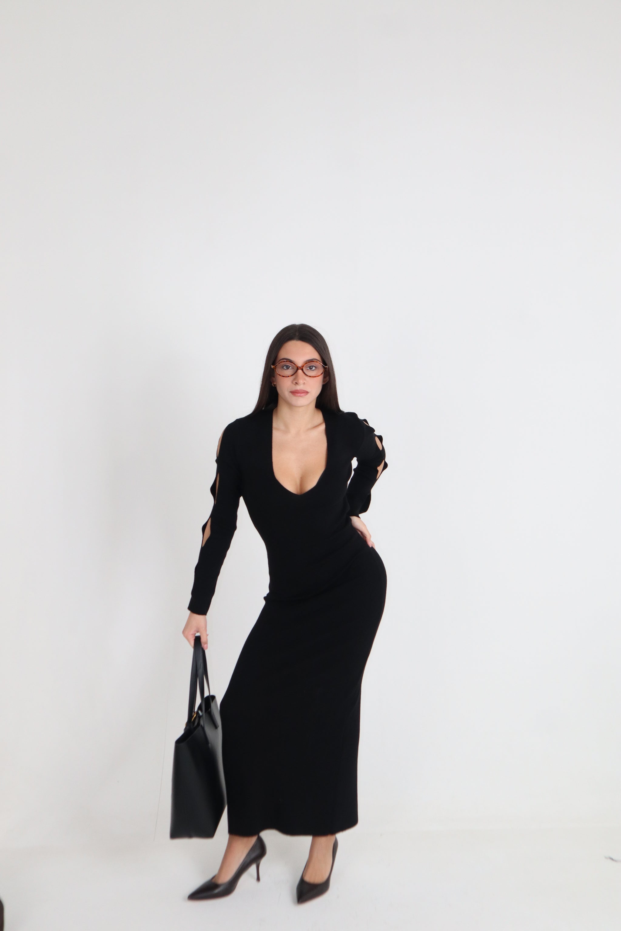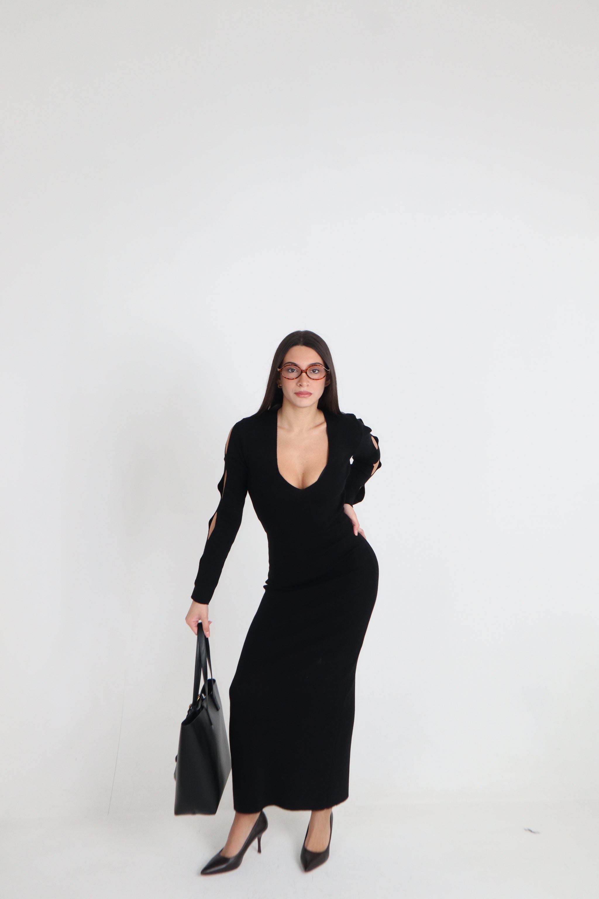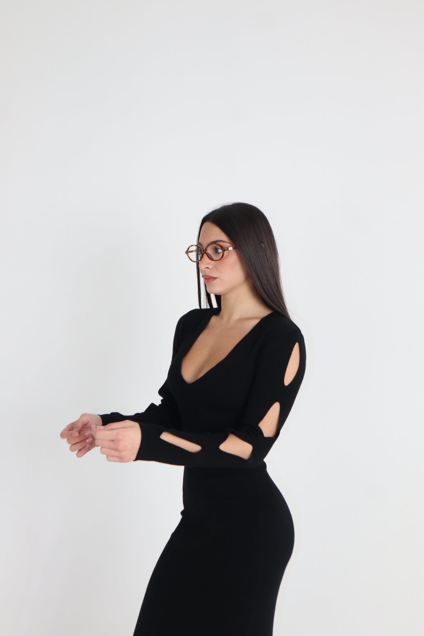 ABITO LUNGO CON FORI SU MANICHE