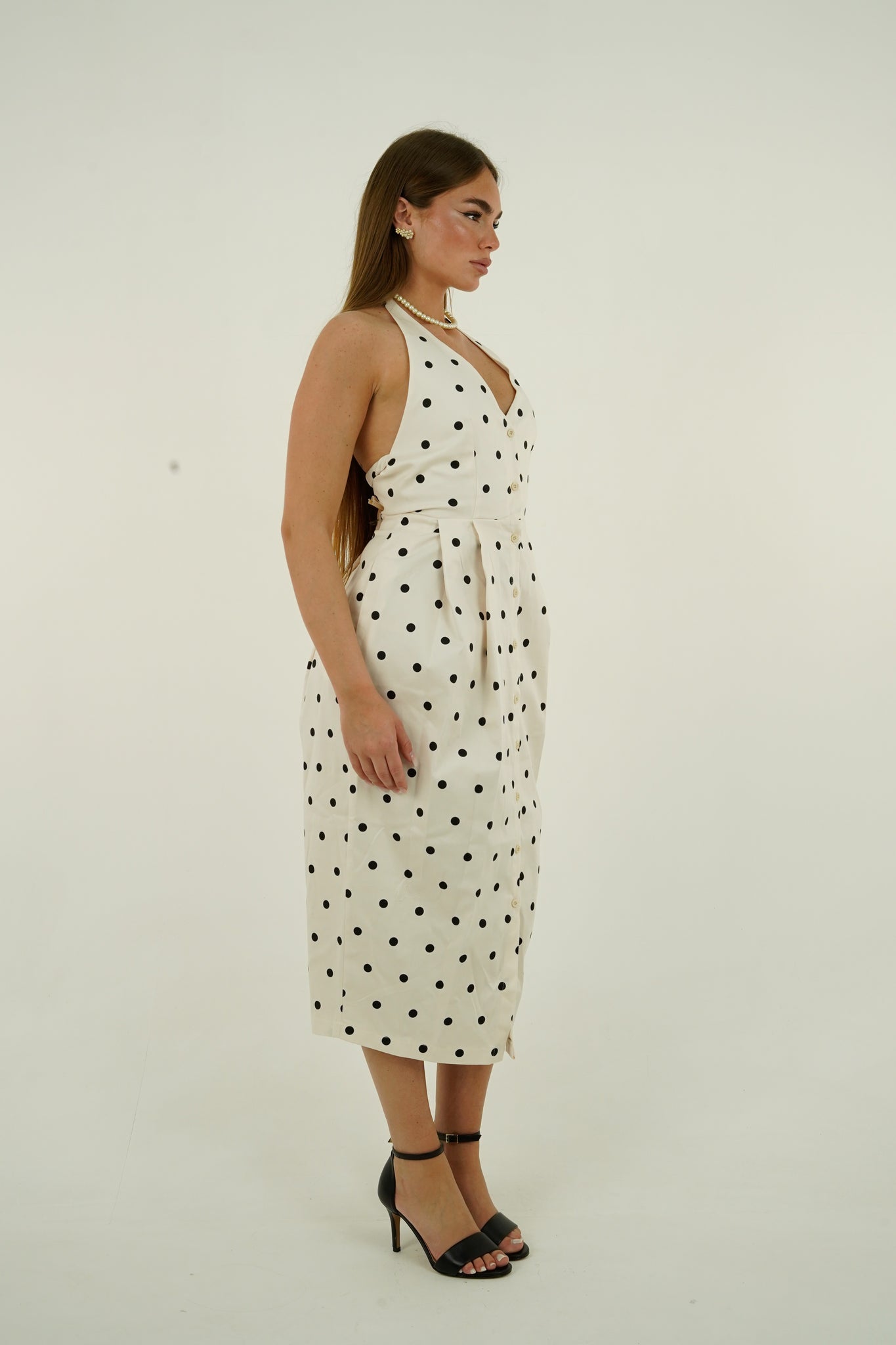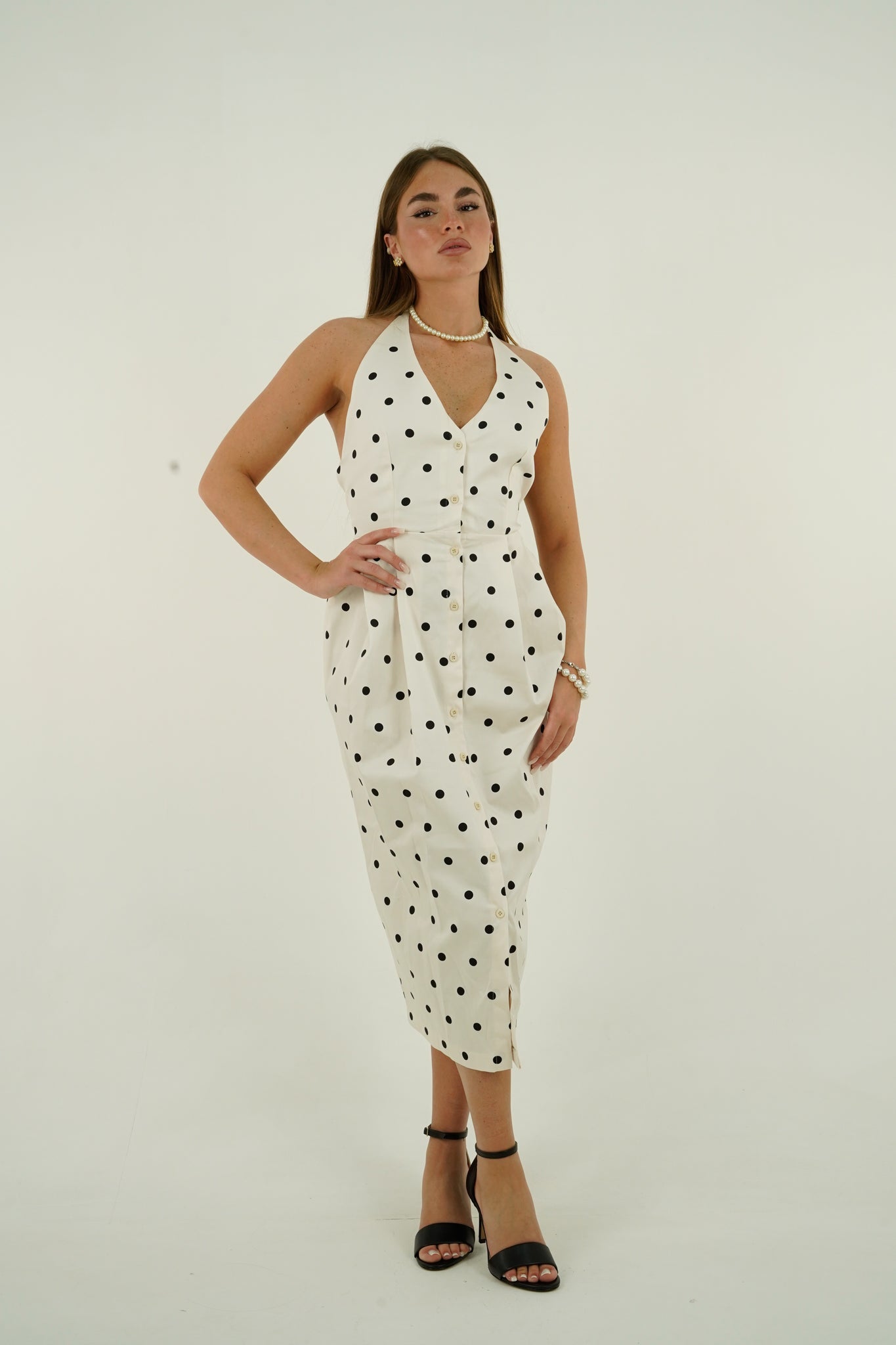 L'ABITO longuette a pois presenta pences e bottoncini frontali, insieme a uno scollo all'americana. Questa combinazione di dettagli offre un design elegante e versatile, adatto per diverse occasioni. Realizzato con materiali di qualità, garantisce comfort e una vestibilità ottimale, migliorando la silhouette.