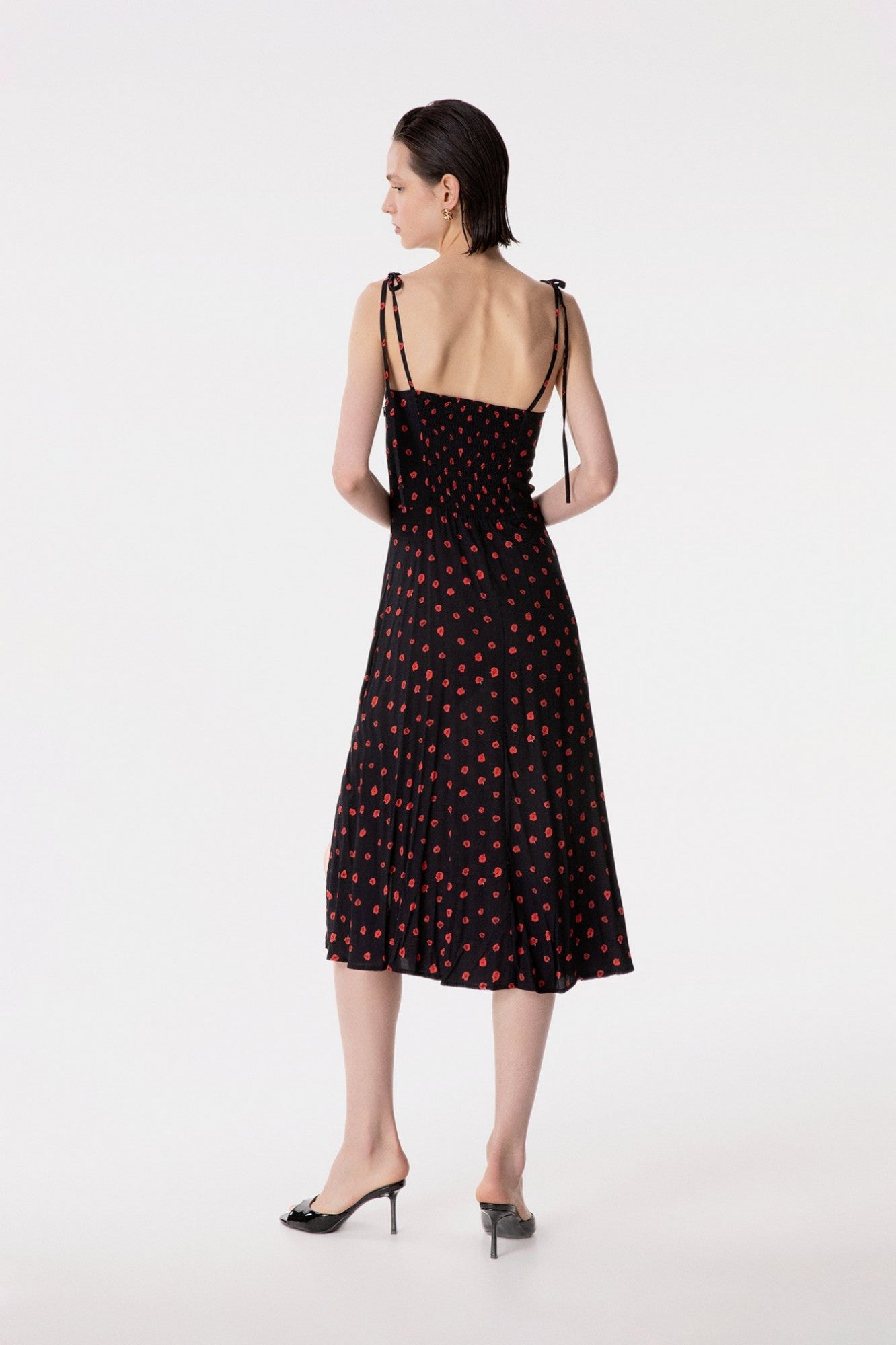 ABITO MIDI IN CREPE CON ROUGE SULLA SCOLLATURA E SPACCO LATERALE
