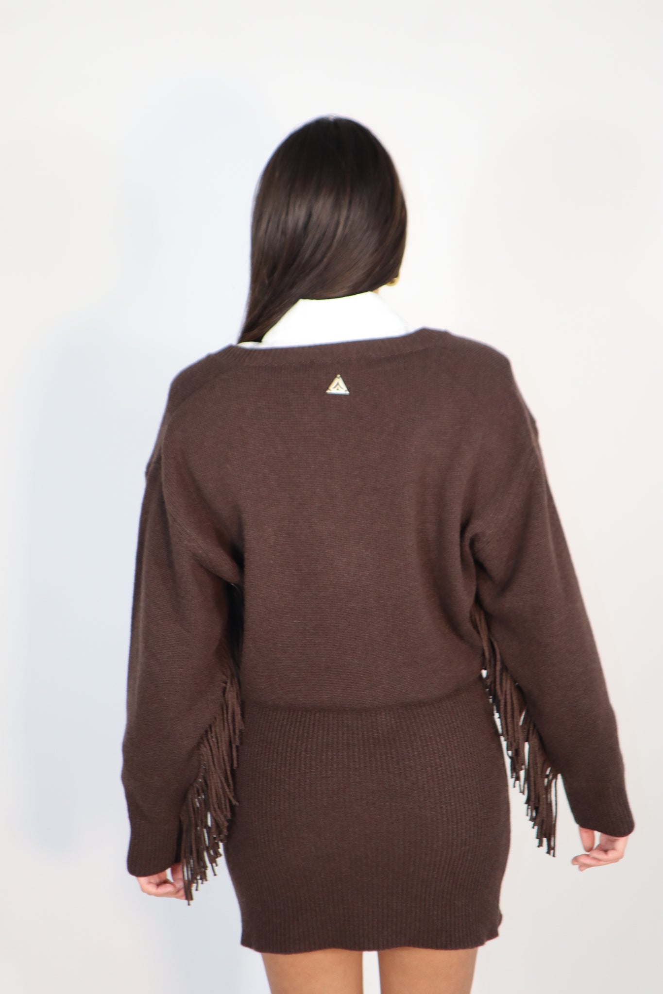 ABITO IN MAGLIA SCOLLO V E FRANGE