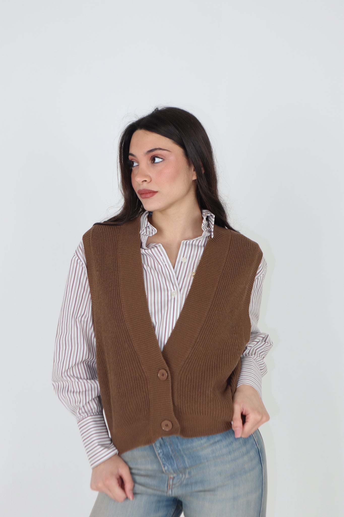 GILET SMANICATO SCOLLO A V COSTINA