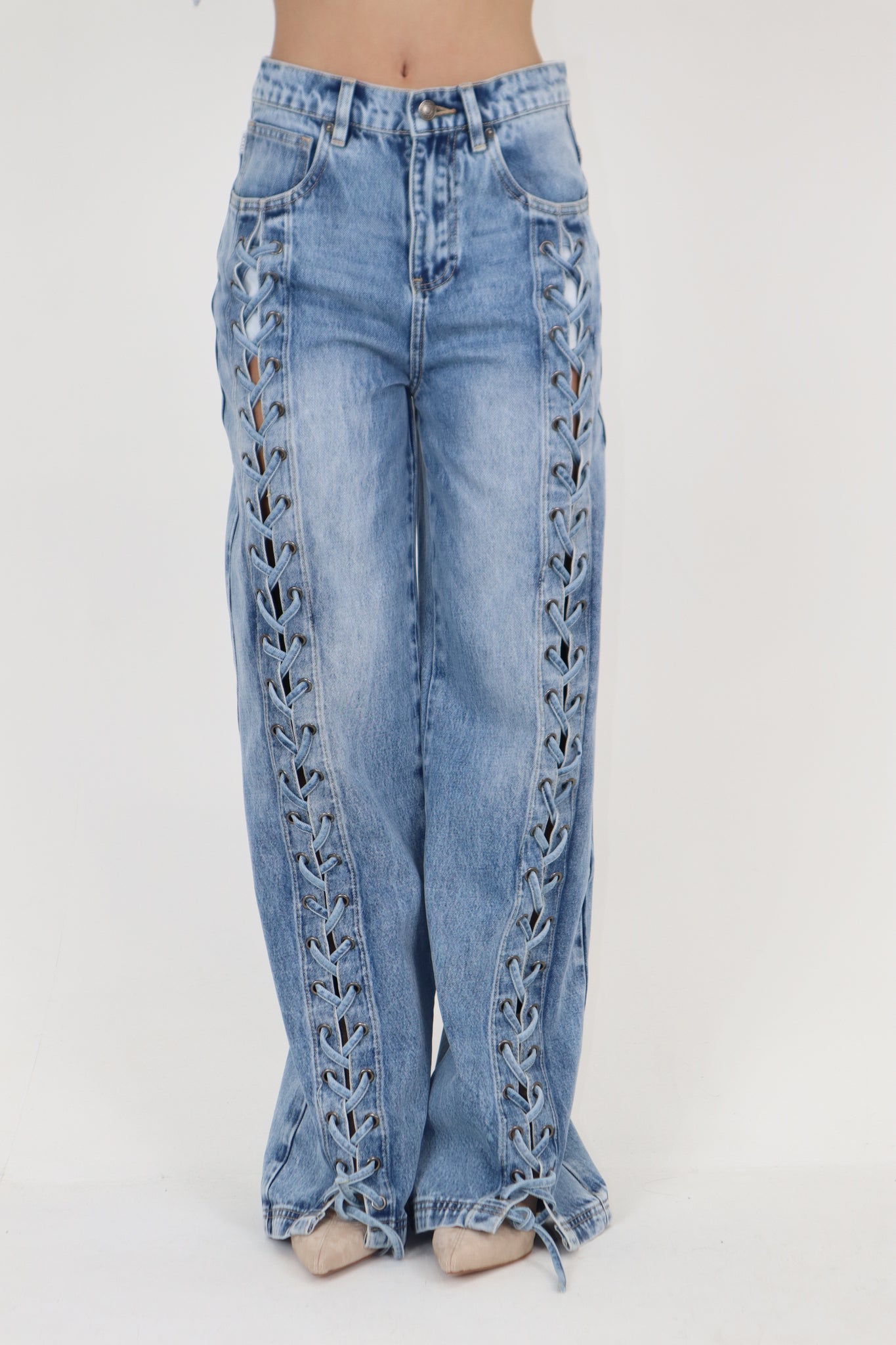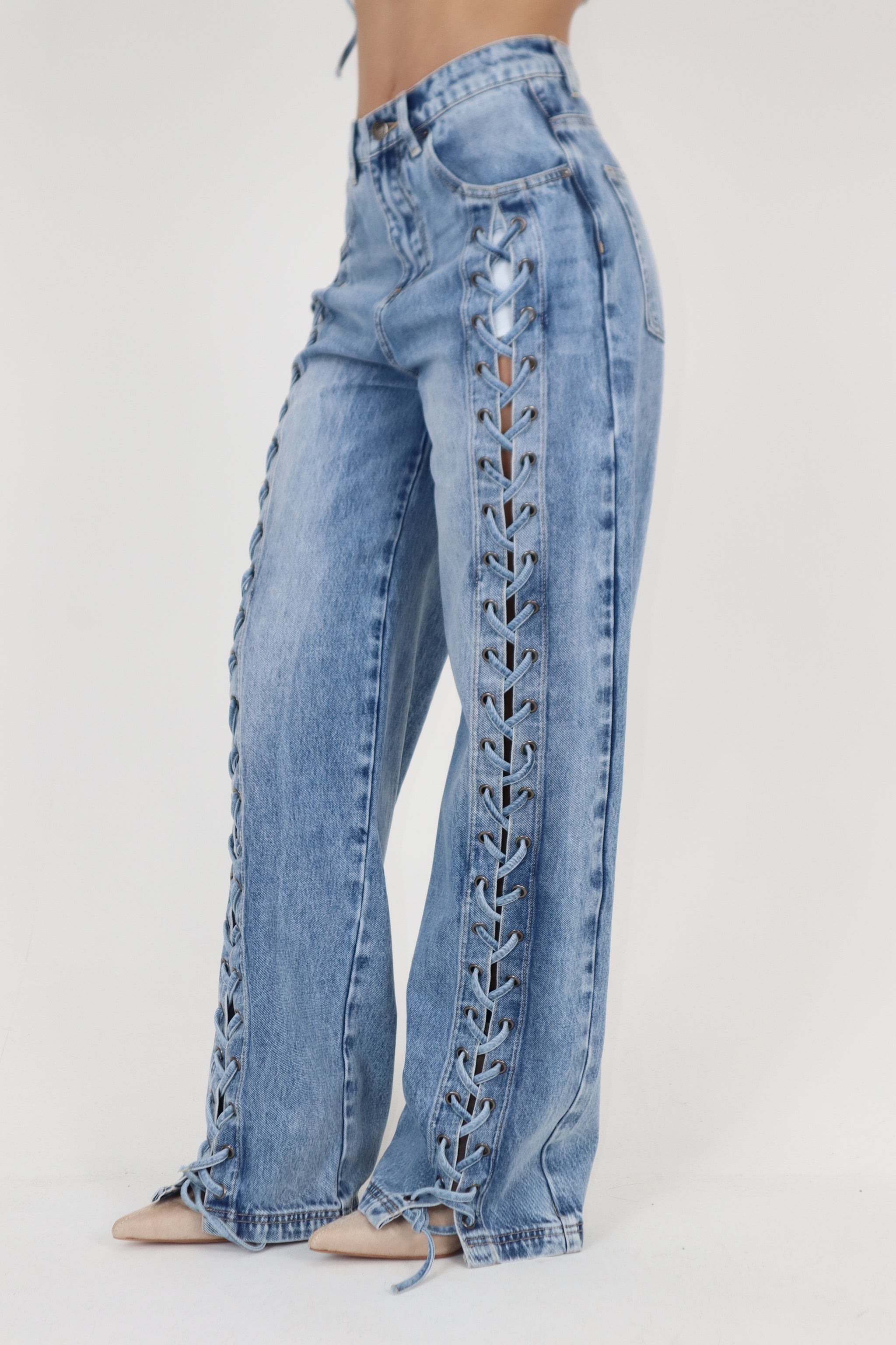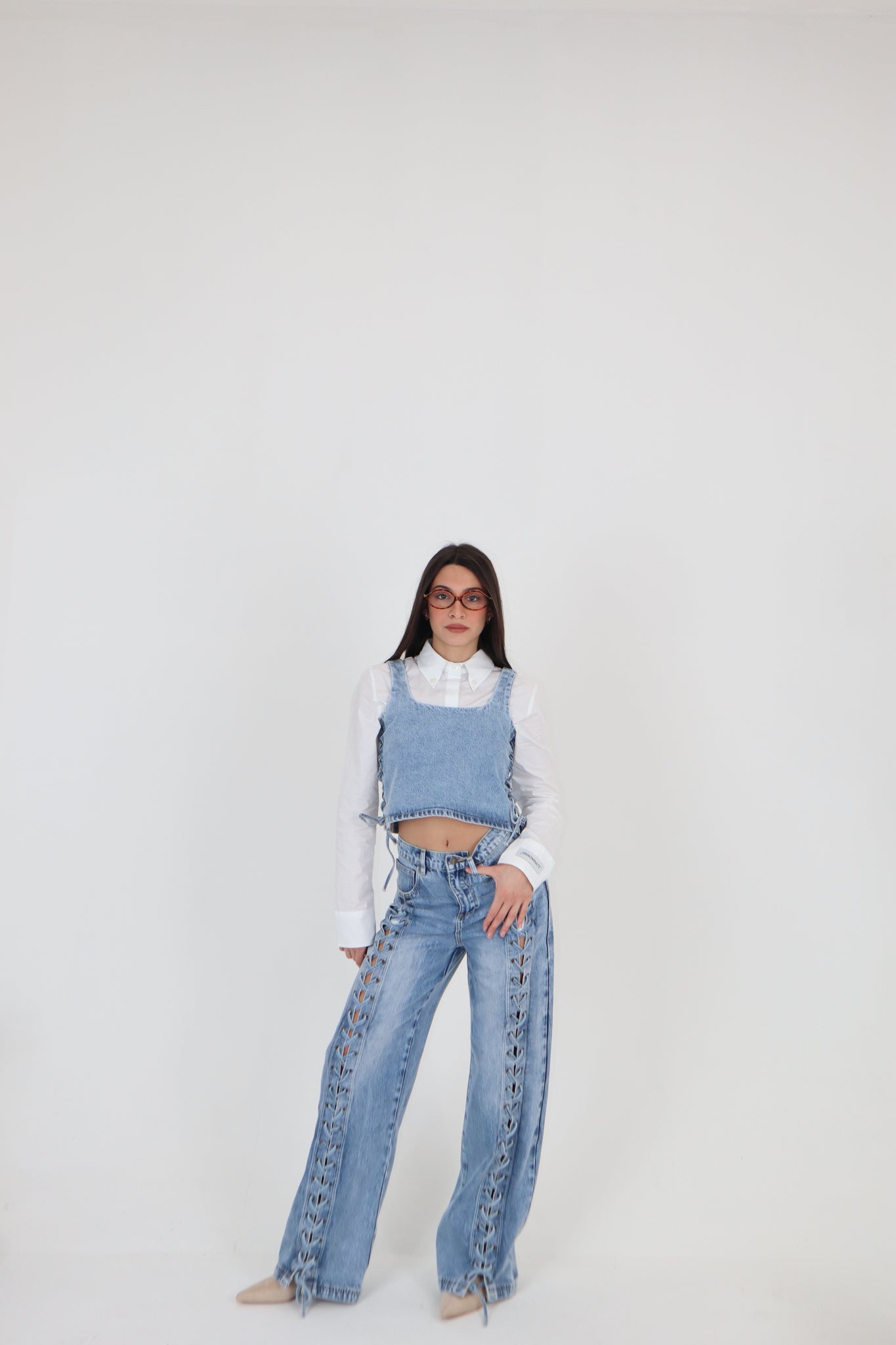 DENIM CON LACCI INTRECCIATI SUL DAVANTI